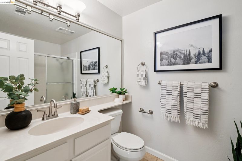Nestled in Pleasant Hill’s serene Cobblestone community, 10 Pomfret Walk is a 2 BD/ 2 BA condo perched in a tree-lined setting. Spacious and light-filled, the living room showcases a large fireplace with a mantel and hearth. Multiple windows and slider to the balcony provide warm light and views of Mt Diablo. The open floor plan affords ample living space. The oversized balcony is the ideal spot to catch the warm sun! Perfect for a cafe table or patio set, it will quickly become your favorite place to relax. The sizable primary bedroom features loads of light and two deep closets with built-ins. The en-suite bath boasts modern lighting, an oversized mirror, and a spa-like shower. The airy, light-filled second bedroom showcases a huge closet and soft carpeting. The hall bathroom shines with stunning lighting and an oversized mirror. The kitchen is a home chef’s dream with granite countertops, open breakfast bar, and newer stainless steel appliances. Laundry will be a breeze with the washer and dryer units cleverly tucked away into a hall closet. The Cobblestone neighborhood amenities include green spaces, a swimming pool and spa! 10 Pomfret Walk offers a covered parking spot and a dedicated garage. It is freeway accessible and just a short stroll to schools, shops, and parks.