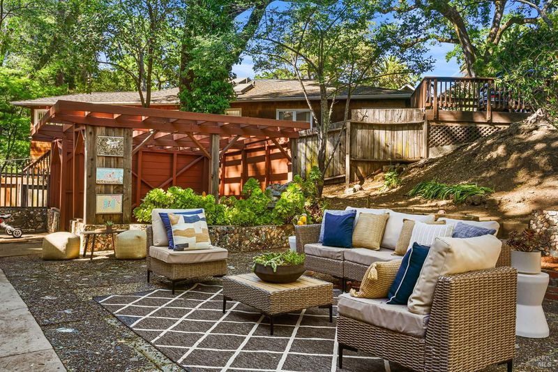 Welcome home to this beautifully updated 3-bed, 2-bath residence, ideally located minutes from the vibrant downtowns of San Anselmo and Fairfax. A gated entry and generous off-street parking set the tone for privacy and convenience. The main level features a stylish chef's kitchen that flows to the dining room and living room with a cozy fireplacean ideal layout for entertaining. A covered front porch offers a delightful space to relax and unwind. Two bedrooms and an updated full bath complete this level. The lower level offers a private primary suite with full bath and direct access to the serene grounds. A spacious basement includes a 430+ sq ft workshop (not included in sq ft) with storage adjacent to a one-car garage, ideal for projects and extra storage. Outside, level yard areas, plenty of room for gardening create flexible outdoor living spaces, framed by mature trees that lend a peaceful, country feel. Plus, a pergola offers the perfect spot for entertaining, outdoor and alfresco dining and BBQs. All this while being just minutes from shops, restaurants, and community events. Served by highly regarded San Anselmo schools your next chapter starts here. Come home to San Anselmo.
