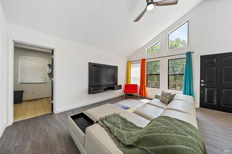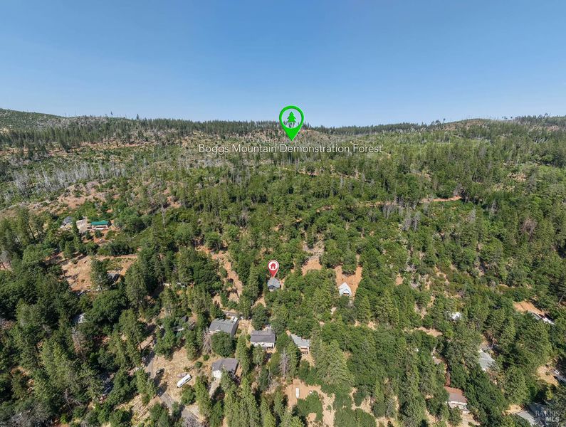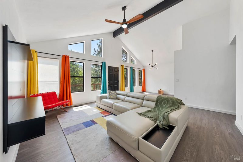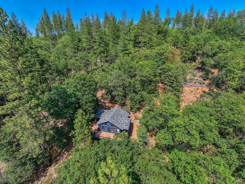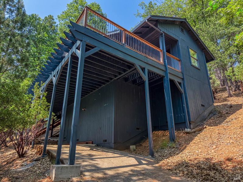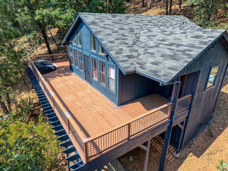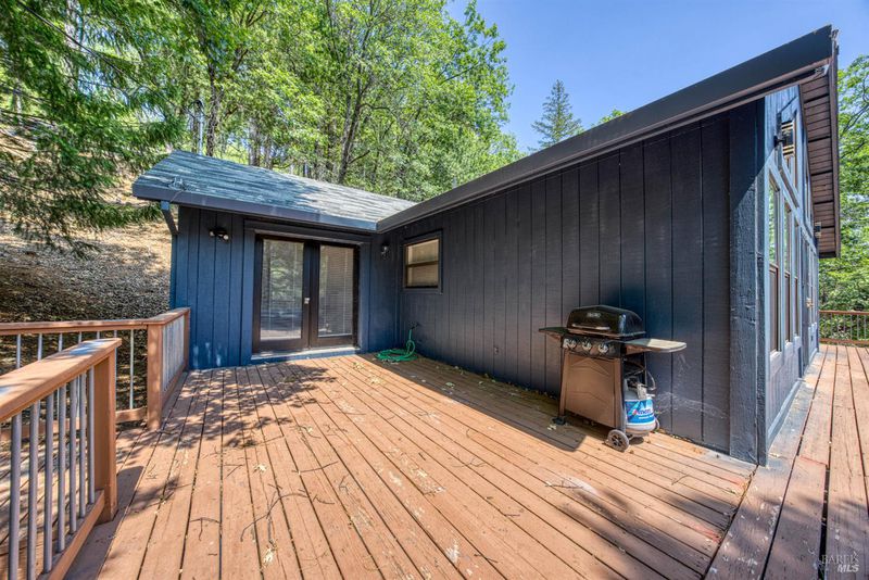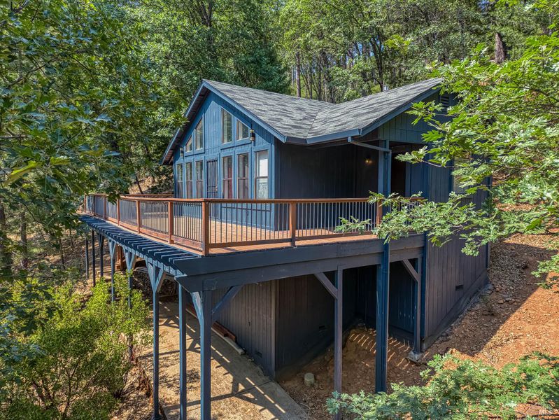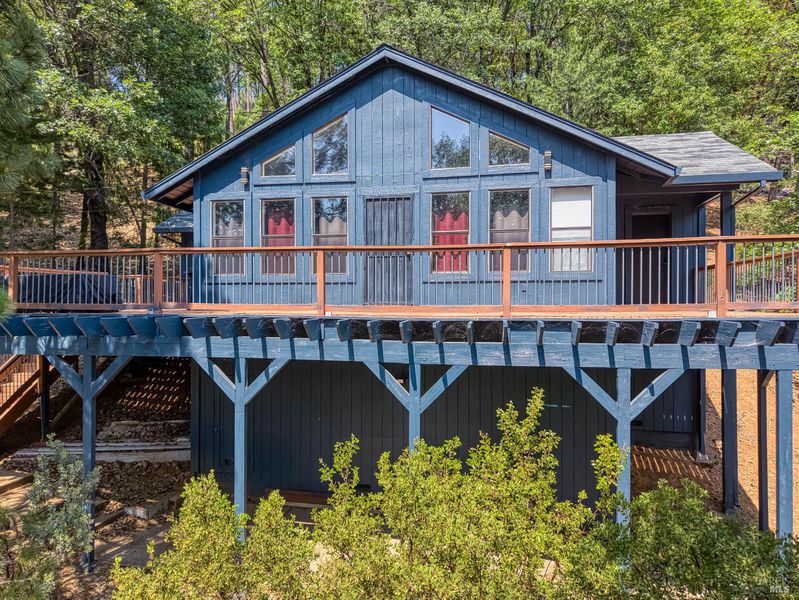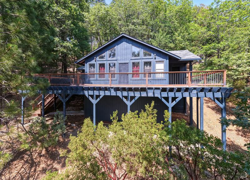 Cobb Mountain Get-Away! Perched privately atop a well maintained large, (.276 acre) lot, you will find this 2 bedroom, 2 bathroom, 1130sq ft mountain retreat. Ample large windows make for a bright and airy feel. Vast open concept featuring beamed ceiling in the living area. The living space incorporates the front deck, as well as, French Doors leading to the deck from one of the bedrooms, all boasting magnificent views of Cobb Mountain and beyond. Access door from the hallway to the rear landing immerses you into a forest setting. An independent laundry room with wash basin is a plus! MANY beautiful upgrades to the home have been done, as well as fresh paint on the exterior. Enjoy Central Heat and Air!! Locked storage area underneath the home. The lot offers a flat area below for possible additional parking. Easy maintenance landscaping! Moments from local market, coffee shop and pizza place, and just down the road from two Golf Courses and restaurants. Approx. 2hrs drive to San Francisco. Situated in a nice neighborhood, though your own privacy and space from above.
