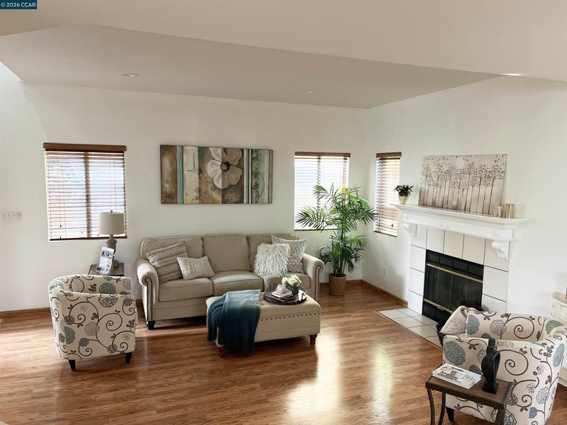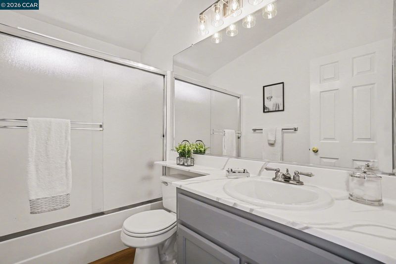Move right in to this nice Parkside home! 3 bedrooms plus bonus room. Could be 4th bedroom, office, family room. Living room with wood burning fireplace, recessed lighting. Eat-in kitchen with breakfast bar, granite countertops, new range/oven, stainless appliances, freshly painted cabinets. Dining area with slider to rear yard. Primary suite with vaulted ceiling, two closets, bathroom with dual sinks, oversized tub. Freshly painted interior, new flooring upstairs, newer water heater. Low maintenance yards with auto drip system. Community pool and clubhouse. Zoned for award winning Morello Park Elementary. Conveniently located to shopping, parks, Highways 4 and 680 and vibrant downtown Martinez with shops, restaurants, marina.