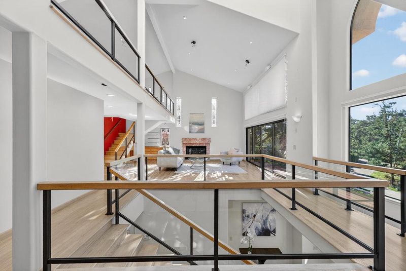 Discover this exceptional architectural residence in the heart of Pebble Beach, offering 2,485 sq ft of inspired living space with 3 bedrooms and 3.5 bathrooms. Designed around light, volume, and clean modern lines, this multi-level home features dramatic two-story ceilings, expansive skylights, and walls of glass that bring the surrounding forest indoors. The main living area centers on a striking marble fireplace and opens to a large wraparound deck for seamless indooroutdoor living. A built-in wet bar with floating glass shelves and custom stained-glass windows adds a sophisticated touch. A floating mezzanine and upper loft provide flexible space for an office, studio, or lounge overlooking the great room. All three bedrooms are spacious with vaulted ceilings and abundant natural light. Sliding glass doors from the primary and secondary bedrooms offer direct access to private outdoor areas. The generous kitchen layout provides great scale and storage, ready for personal updates. Outdoors, enjoy a landscaped garden with stone paths, mature trees, succulents, and multiple seating areascreating a peaceful retreat. Minutes from The Lodge, world-class golf, and coastal beauty, this distinctive property offers exceptional potential in a prime Pebble Beach location.