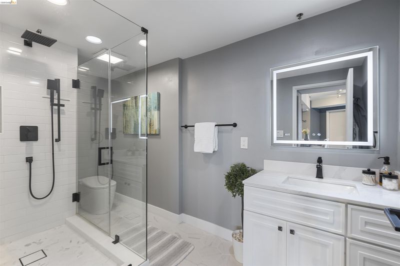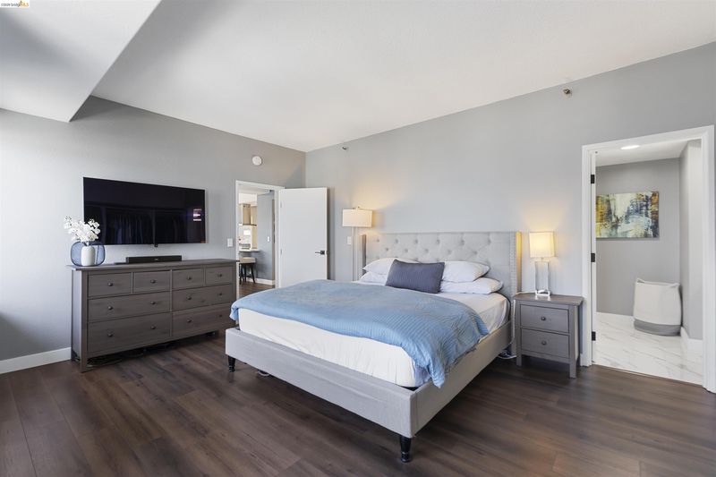 Welcome home to this one of a kind remodeled 2 bedroom unit in the exclusive Pacific Park Plaza building! This property has been meticulously remodeled from floor to ceiling with attention to detail. From the new LVP flooring throughout the home to the updated track lighting with dimmers. The kitchen boosts new white quartz countertops, white shaker cabinets, soft close drawers, glass backsplash with under lighting, and Stainless steal Frigidaire appliances. The half bathroom was updated to a full bathroom and both bathrooms have modern tile floors and walk in shower, LED mirrors, and Bidet. Both bedrooms have built in custom closets and spectacular views. The spacious open floor plan invites in natural light and the stunning views from the oversized windows and two balconies frame the hills in every room. Amenities conveniently located in the building including on site gym, tennis courts, pool/ hot tub, sauna, dedicated parking, EV car charging stations, laundry rooms on every floor and 24hr security desk. Steps to Christie park, Emeryville Public Market and Trader Joes. Plus, easy freeway access and multiple transit options including Amtrak, Emery-Go-Round Shuttle and Express Transbay bus lines right outside the front door!