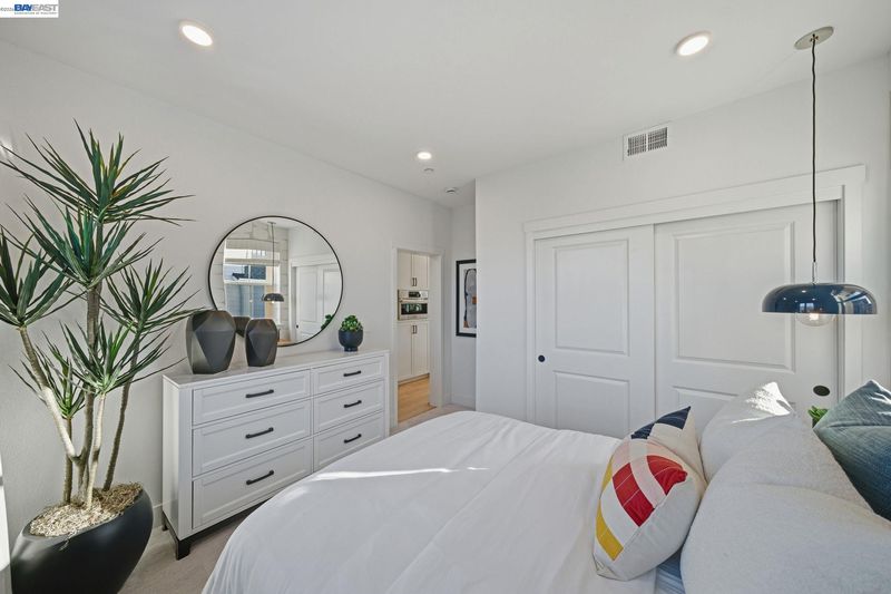Welcome to Homesite 202 at Alicante, where everyday ease and purposeful design come together across 1,187 square feet of thoughtfully crafted living space that is move-in ready! The open-concept second floor seamlessly connects the family room and kitchen, creating an ideal setting for both daily living and entertaining. The beautifully appointed kitchen features Dove Gray recessed-panel Beech Shaker cabinetry, elegant granite slab countertops with a 6-inch backsplash, and sleek Bosch stainless steel appliances. The private primary suite offers a spacious bedroom, a well-designed bathroom with dual sinks and a walk-in shower, and an expansive walk-in closet. A well-sized secondary bedroom and full bathroom provide additional comfort and flexibility. Located in the Arroyo Crossings community, residents will enjoy access to exceptional amenities including a clubhouse with a chef’s kitchen, lounge areas, a pool, BBQ/picnic spaces, and pocket parks. Representative photos added.