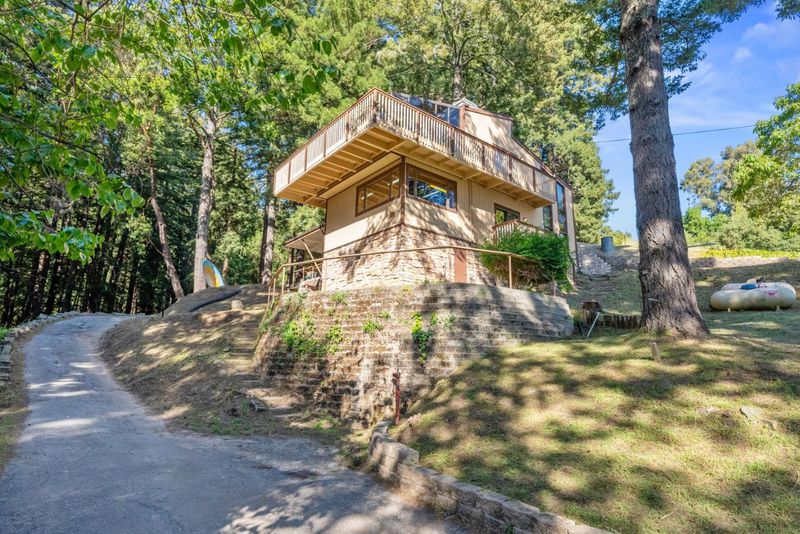CHARMING 2-BDRM 1.5-BA COTTAGE WITH BONUS SPACE BELOW! | SEPARATE 2-STORY WORKSHOP | GATED & PRIVATE | If you love nature you will love life among the redwoods and the huge ocean views just up the road from the property! Peaceful mornings on your deck, enjoy sunsets through the trees. In the main home, an open living rm-kitchen, lots of light, and balcony with redwood views. Additional to the home's 800±sf is a partially finished basement accessible from the deck! Extra space features a .5 ba., laundry area, and space for gym, hobbies, etc. Separate 2-story 1307±sf workshop is a dream for creators, builders, plant lovers, more! Oversized barn door allows for large pieces or equipment, 500lb upper-level hoist, heat, water, outlets. Could be an art studio, woodworking haven, or plant spot! 2nd level is full of natural light and treetop views that inspire. Fresh exterior paint! Convenient drive-through driveway encircles both home and workshop. Top schools nearby, close to grocery shopping at Summit Store, and just 12± mi. to Capitola taking the famed backroad, Soquel-San Jose Rd.! Cottage previously rented at $2,600/mo., income potential. If you want a cozy home, weekend retreat, or a place to build and create, this property invites you to live, work, and play among nature.