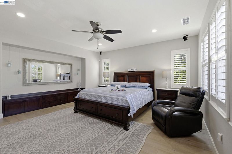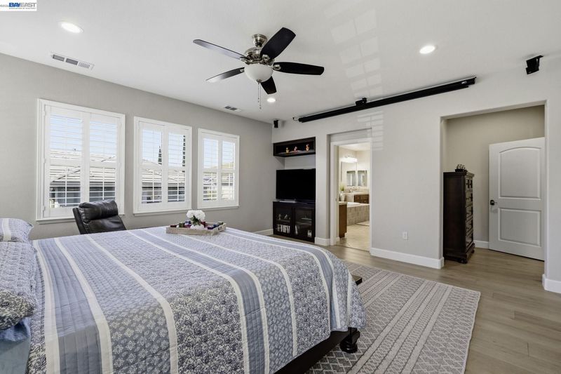 Experience the pinnacle of luxury living in this exquisite 2,962 sqft corner-lot home in the premier Windemere neighborhood! This 4-bed, 3-bath home, w/ ~240K in upgrades, shows like an upscale designer model. Tiled entry way w/ step lights lead to an inviting glass insert front door. Step into a sun-drenched floor plan defined by soaring high ceiling living room, showstopper chef’s kitchen w/ island - features exclusive Taj Mahal Quartzite countertop, custom soft-close cabinetry & SS appliances, separate family room anchored by breathtaking -floor-to-ceiling- marble paneled fireplace. Coveted main-level bedroom & full bath. Exquisite chandeliers, decorative wrought-iron balusters on the staircase, wide plank hard wood flooring & built-in wooden cabinetry throughout. Central AC. 8.2kWh owned solar system w/ dual backup batteries. Upstairs is a spa-inspired primary suite featuring dual vanities, a jetted soaking tub & an expansive walk-in closet w/ custom organization. 2 other generous sized bedrooms w/ custom closets. Enjoy your serene oasis w/ manicured lawns, landscaped yard w/ custom arbor for entertaining. 3-car garage w/ attractive epoxy flooring, EV charging & water softener. W/ just steps to top schools, parks & trail, this fabulous & turnkey abode is THE HOME for YOU!