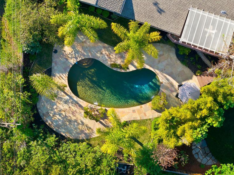 Tucked at the end of a court in a desirable Los Gatos neighborhood with top schools, this single-story home on a generous corner lot offers outdoor space rarely found in this area. The floor plan features all bedrooms on one wing, including a primary suite with sliding doors to the side yard. On the opposite side, the main living areas are designed for entertaining, featuring a beautifully updated kitchen with a large island and skylight, charming breakfast nook, and a family room with vaulted ceilings. Arched passageways lead to formal living and dining rooms, adding warmth and architectural character. The outdoor spaces shine with a pool with fountains, a deck with an outdoor heater perfect for year-round gatherings, resort-style landscaping, and a gated side yard off the kitchen. Unique details include a built-in dog crate and feeding area. The garage is equipped with HVAC and features a custom nano-style pass-through window to the balcony, creating an indoor-outdoor bar setup ideal for entertaining. Homes offering this level of layout, flexibility, and indoor-outdoor living in this location are rarely available. From lively poolside evenings to a close-knit community known for neighborhood events and progressive dinners, this is a home where lasting memories are made.