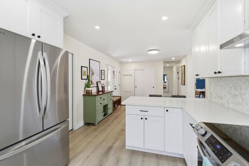 This home showcases recent modern upgrades throughout, offering a clean and updated feel from the moment you step inside. The kitchen is designed with quartz countertops, a tile backsplash, stainless steel appliances, and peninsula bar seating creating a functional space that opens naturally to the main living areas. Recessed and modern lighting, along with luxury vinyl flooring throughout, add a cohesive and contemporary touch. The living area provides easy access to the backyard, creating a seamless indoor-outdoor flow ideal for everyday living and entertaining. Both bathrooms have been beautifully remodeled with modern finishes. Set on a property with a huge backyard and open space, the home offers a resort-style indoor/outdoor experience with plenty of room to relax, host, or expand. Located within the boundaries of highly rated schools, this home combines thoughtful upgrades with a practical and desirable layout.