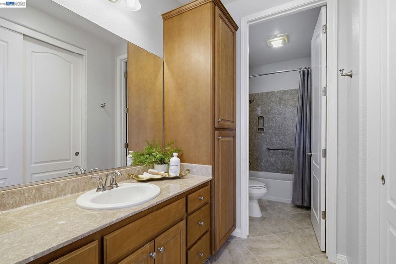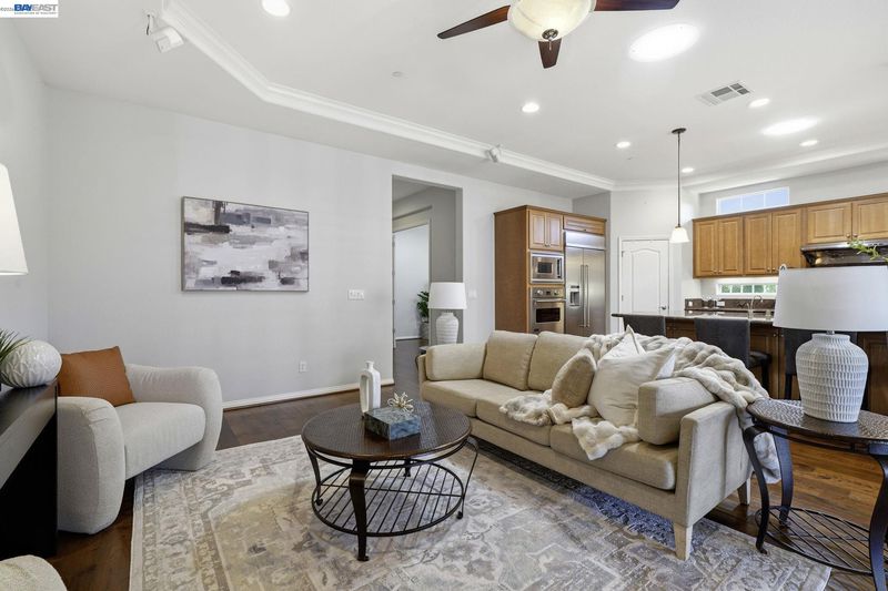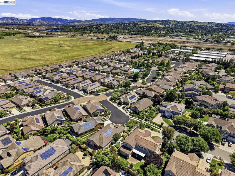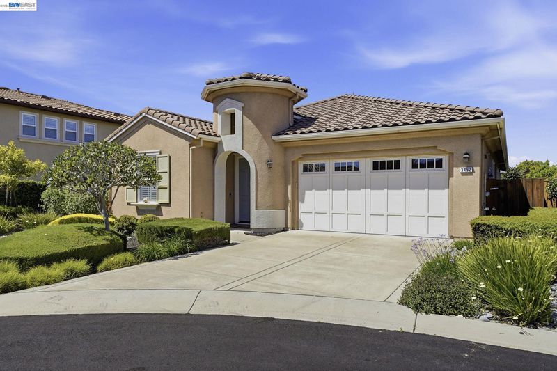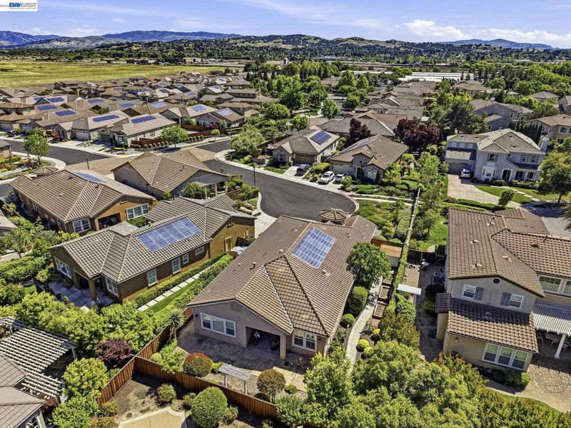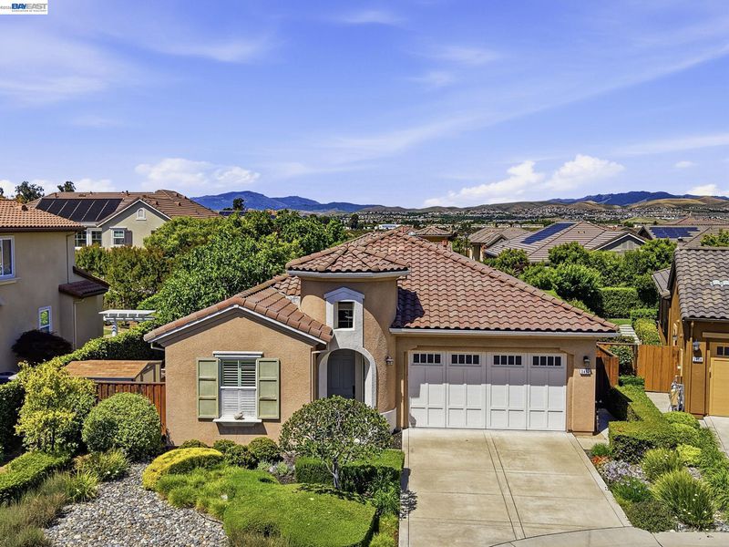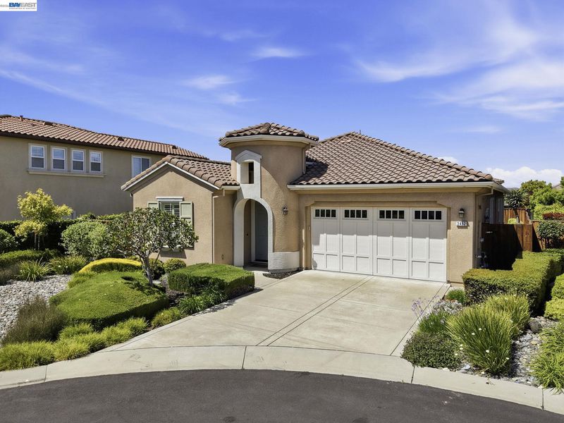 Luxury resort living at The Village, in the 55 and up community. The community features a clubhouse, gym, library, card room, outdoor barbecue, Bocce ball courts, pool and Spa. This gated community offers security to homeowners. This Mediterranean style home is all on one level, features include a title roof, solar panels, a tankless water heater and a two car garage.The kitchen boasts granite counters, a large island, pantry and stainless steel appliances. The great room has a gas burning fireplace and wood floors. The spacious primary bedroom suite includes carpeting and a walk-in closet. Private court location with a extra large lot. This home offers three bedrooms and two and one half bathrooms. Don't miss this highly upgraded home built by Ponderosa home builders.