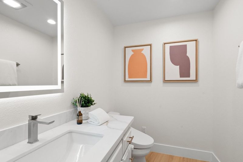 - Double Sinks, Full on Ground Floor, Marble, Primary - Oversized Tub, Primary - Stall Shower(s), Solid Surface, Stall Shower - 2+, Tile, Updated Bath