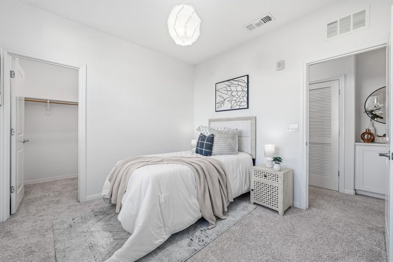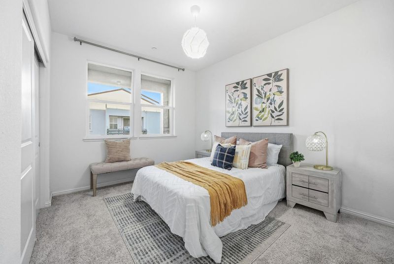 Welcome to this modern townhome offering 3 bedrooms and 3 bathrooms in the convenient Berryessa area, with the entrance facing Newbury Park. The main level features an open floor plan with a light-filled kitchen and family room combination, complemented by recessed lighting throughout. The U-shaped gourmet kitchen boasts large quartz countertops, a stylish backsplash, stainless steel appliances, and ample white cabinetry. The family room opens to a private balcony, and this level also includes a bedroom and a bathroom with a shower-over-tub. Upstairs, you will find two suites. The primary suite offers a spacious bedroom with its own private balcony, a walk-in closet, and a bathroom featuring a double vanity with quartz countertops and a stall shower. The second suite also includes a walk-in closet and a bathroom with a quartz countertop and a stall shower. A washer and dryer are conveniently located on the upper level. Ideally located in Berryessa, this home blends modern comfort, functionality, and everyday convenience. The San Jose BART station, Safeway Plaza, Costco, H-Mart, and 99 Ranch Market are just minutes away, with easy access to Highways 101 and 680. Also it is within walking distance to google and meta shuttle stops! Do not miss this great opportunity!