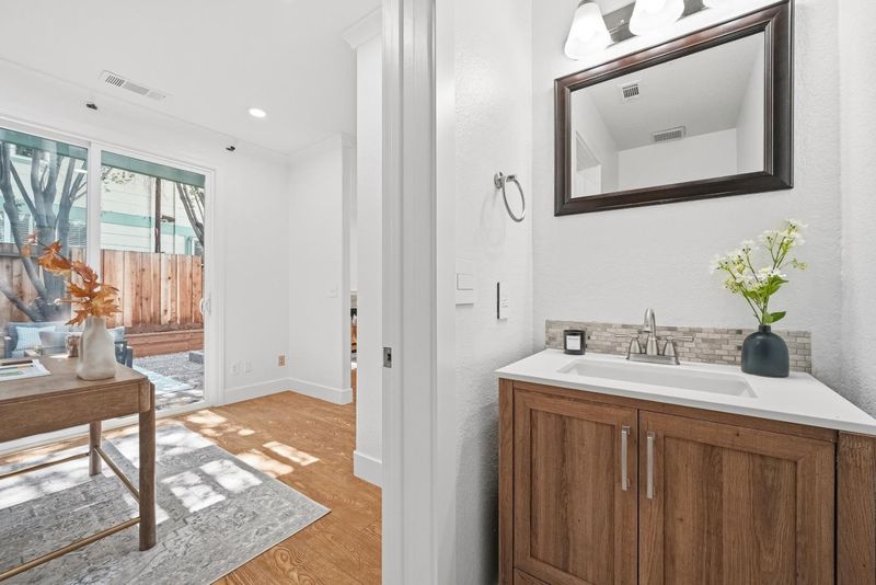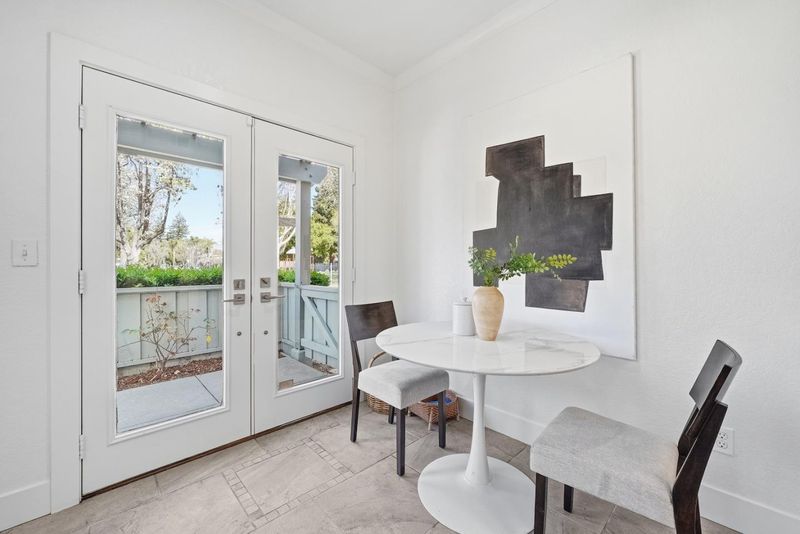 Step into this updated 3 bd/2.5 ba end-unit townhome nestled in the Oaktree Commons community. This 2-story gem offers privacy, modern amenities, and unbeatable location. The main floor invites you to relax/entertain with a smart layout. Cozy up by the fireplace in the living room, host dinners, or unwind in the back den/family room, which opens to a private fenced yard. French doors off the kitchen open to a private patio for morning tea overlooking Klein Park. Upstairs, three spacious bedrooms include a primary suite with vaulted ceilings, WIC, and a bathroom complete with soaking tub, sep shower, and a vanity/dressing area. Additional amenities include upstairs laundry hookups, central HVAC, and an attached 2-car garage with eV charger (NEMA 14-50). This move-in ready home checks all the boxes: energy-efficient dual-pane windows, LED lighting, and refreshed kitchen/baths. Easy access to Klein Park, Trader Joes, Walmart, dining, cinemas, gyms, and Caltrain plus Free MV Shuttle. Commuters will love the prox. to Google, LinkedIn, Intuit, etc. with fast connections to Highways 101, 85, and Central Expwy. With only one shared wall, ample private outdoor space, and top-rated Los Altos High School, don't miss your chance to make this home yours!