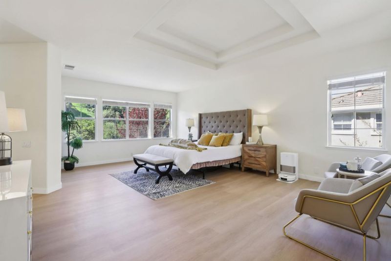 Nestled in the gated Silver Creek Valley Country Club, this luxurious northeast-facing residence offers sweeping views with no front or rear neighbors. A grand entrance leads to an elegant interior highlighted by soaring ceilings in the living and dining rooms. An abundance of windows fills the home with natural light while framing scenic views from nearly every room. A formal office provides the perfect space for working from home. The newly remodeled kitchen features quartz countertops, stainless steel appliances, a center island and a charming garden window. It flows seamlessly into a large open-concept family room with a cozy fireplace, creating a comfortable space for everyday living and entertaining. The thoughtful floor plan includes a downstairs ensuite bedroom, offering comfort and privacy for guests or extended family. Upstairs, the expansive primary suite boasts elegant coffered ceilings and a private sitting area, creating a serene retreat. Two additional bedrooms share a convenient Jack-and-Jill bathroom. A community park within a short walking distance adds to the appeal, offering nearby outdoor space to enjoy. Fully remodeled throughout and move-in ready, this exceptional home combines luxury, comfort, and views in one of the Bay Area's most desirable communities.