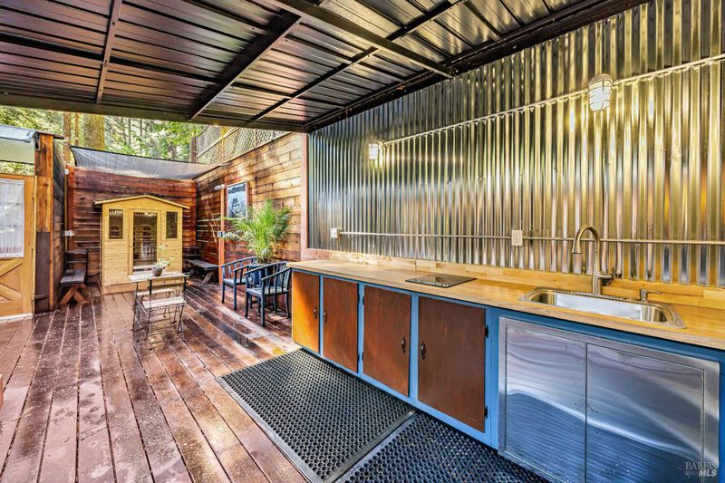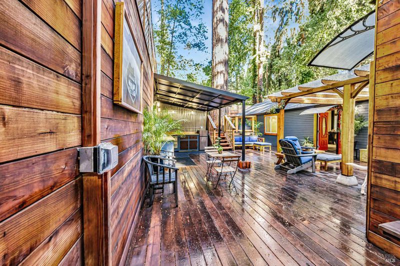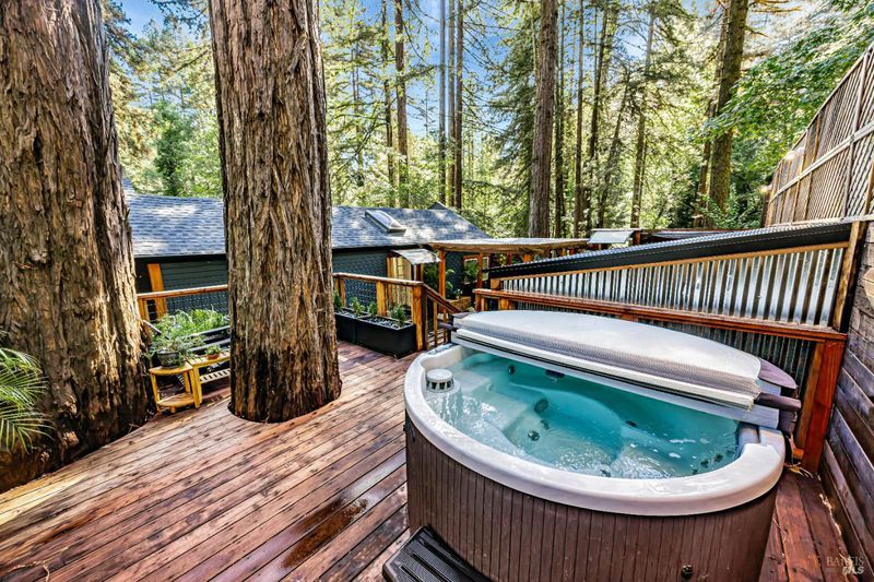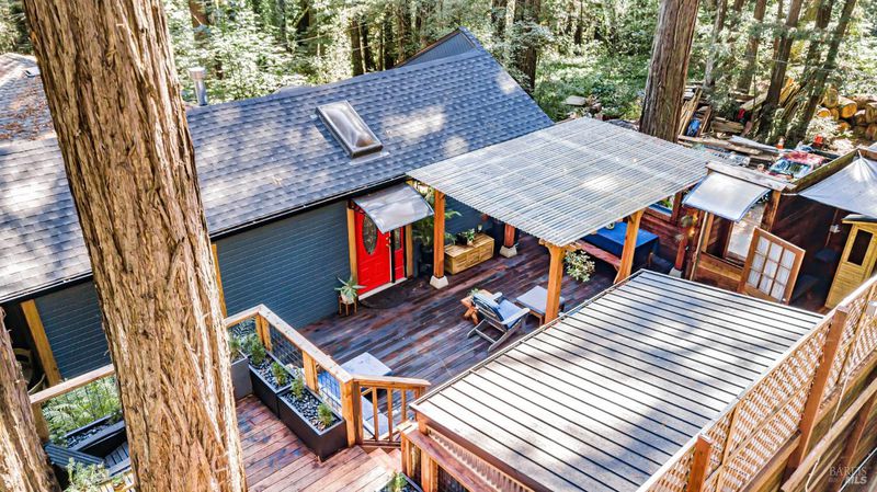 Nestled among the towering redwoods, this property is a unique Magical Redwood compound. The main residence has been thoughtfully updated, creating a warm and inviting retreat surrounded by nature. A charming detached 1-bedroom, 1-bathroom guest house with its own private deck provides ideal space for guests, extended family, or potential rental income. The expansive enclosed redwood deck serves as a true outdoor sanctuary, featuring a fully equipped outdoor kitchen, spa, and sauna--perfect for entertaining or unwinding in total privacy. Additional storage space beneath the home adds valuable functionality, offering room for tools, gear, or seasonal items. Designed for seamless indoor-outdoor living, this unique property captures the essence of peaceful Sonoma County living while offering stylish, move-in-ready amenities.