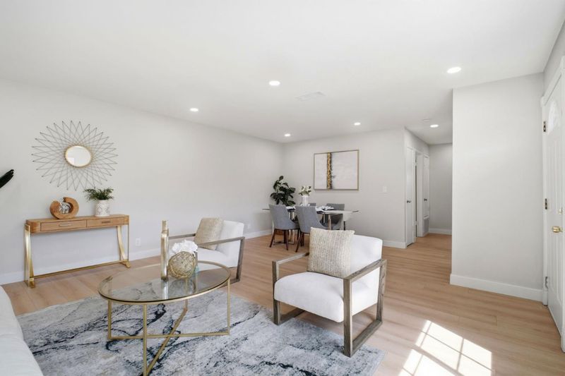 Located in the highly desirable Liberty Park community, this one-story single house offers a modern open floor plan that blends the living room and dinning area for effortless flow. A beautifully remodeled kitchen with two-tone cabinetry , quartz counters and stainless steel appliances . Double panned windows and recessed light are throughout the whole house. Newly remodeled bathrooms with modern finish, new interior and exterior paint, laminate floors throughout . An attached, oversized garage includes the laundry area and spacious storage. The lush green lawn gives a natural and relaxing feeling. A short walk to schools, downtown farmer's market and restaurants in the revitalized 'Old Alvarado'. Prime location near I-880/84/92, BART, Coyote Hills, Union Landing and major employers of the Bay Area.