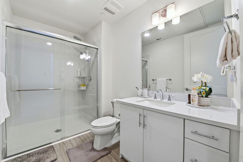 A beautiful stunning penthouse in a resort style community! With vaulted ceilings and two separate outdoor spaces, this 2135 sq.ft. corner unit penthouse provides plenty of space to enjoy! Occupying the top 4th and 5th floors of the building, this home is flooded with natural light coming through soaring high ceiling and row of large windows above. No neighbor above you in this top floor penthouse. Amazing condo entrance with spacious living spaces with large center island, spacious counter top in the kitchen with HQ appliances. Tastefully upgraded Cabinets, Flooring, Countertops, Backsplash, Stair Rails, along with EV Car Charger in garage. Main floor of the home is with two bedrooms and master bedroom next to the balcony. Second floor loft can be a library, study room or entertainment area and the patio door gives you access to a private roof terrace with linear fireplace and with the view of hills on one side and view of the Bay from other side. Located in Metro Crossing community with luxury amenities incl.: entertainment lounge, outdoor kitchens, state-of-the-art fitness center, pool, green belt, and kids play ground. Community is located across the new Warm Springs BART and with easy access to highways 680 and 880.