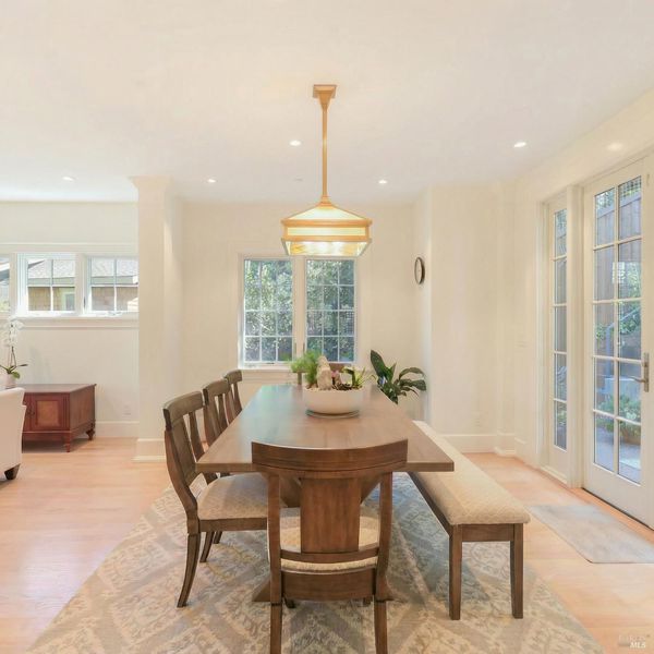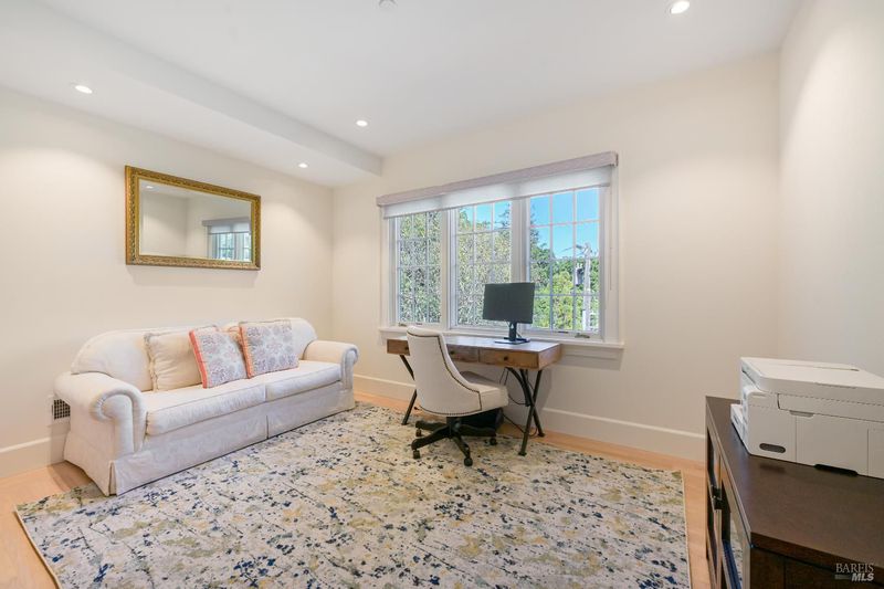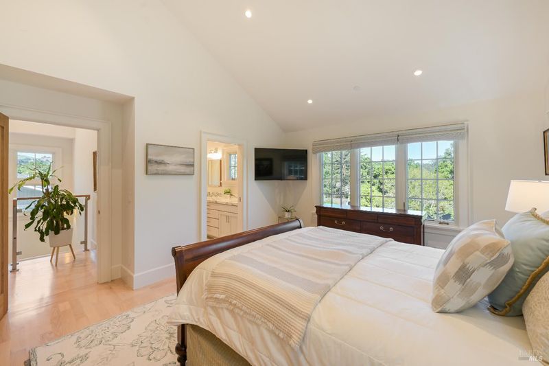 Newly constructed in 2024 and in impeccable condition, this 5-bedroom, 3.5-bath residence is set in the San Anselmo flats, just moments from downtown. Thoughtfully designed and meticulously executed, the home reflects a rare standard of craftsmanship, structural integrity, and quiet sophistication. The interiors unfold with ease, anchored by a beautifully appointed chef's kitchen featuring Bosch appliances, Carrera Blanco marble, a generous island, and a large pantry. The adjoining dining area opens to an inviting patio designed for effortless indoor-outdoor living, while the living room is centered around a marble fireplace and framed by serene hillside outlooks. A flexible main-level bedroom or office offers versatility for guests or work-from-home needs. Upstairs, the primary suite provides a peaceful retreat, complete with cathedral ceilings and a sense of volume and light. Two additional bedrooms are thoughtfully positioned, offering both comfort and privacy. A legal ADU with private access introduces further flexibility well suited for extended in-law stays or potential income. The grounds have been enhanced with a level lawn, creating a usable outdoor space ideal for everyday living, play, or quiet relaxation. CALGreen certified and thoughtfully equipped with owned solar, 2 solar storage batteries, smart home integration, and eco-conscious systems. The home pairs modern efficiency with refined materials, including fine Italian marble and oak flooring. Additional features include a one-car garage with storage, and two EV charging stations with parking. A rarely available offering were timeless design, enduring quality, and understated elegance come together.