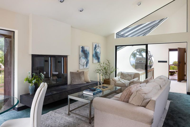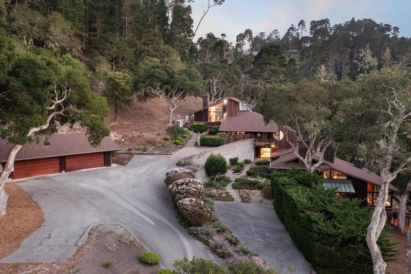 Designed by local acclaimed architect Olof Dahlstrand, this architectural gem blends timeless design with the tranquility of its five-acre Carmel setting. Crafted in redwood and teak, the ~5,777 sq. ft. residence frames sweeping views of Monterey Bay and the surrounding forest through walls of glass and expansive decks. Inside, warm textures and fine materials define every space, including five sculptural concrete fireplaces and custom built-ins throughout. Perfect for entertaining, the home features multiple living areas, including a library and family room, and two full kitchens; one with a commercial-grade Vulcan range and dual Traulsen refrigerators. Four ensuite bedrooms each open to private patios, while the primary suite offers its own fireplace and kitchenette. Additional amenities include a sauna, two laundry rooms, an artist studio with water, and a detached four-car garage. Centrally located within a few minutes' drive into downtown Carmel, Monterey, and all the incredible amenities the Peninsula has to offer, this rare architectural retreat is a place where design, nature, and light exist in perfect harmony.