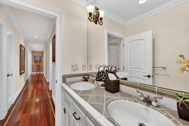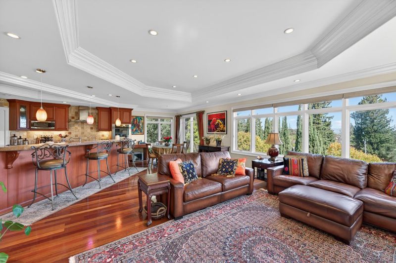 A masterful blend of Mediterranean architecture and refined European finishes, this estate delivers elegance and executive-level comfort. Custom forged iron balusters frame the staircase & front entry and Brazilian cherry hardwood floors with intricate inlays and borders flow beneath soaring ceilings adorned with crown moulding and recessed lighting. The main level has 4 bedrooms, 2 full bathrooms, and 1/2 bath while the primary suite upstairs serves as a retreat with a fireplace, bonus office/nursery, oversized walk-in closet, & ensuite bathroom. Designed for everyday and active living, formal entertaining or even a telecommuting sanctuary. There is a separate living room, formal dining room, & an expansive family room with fireplace. French doors open up to unobstrucuted views of Stevens Canyon Reserve. The chefs kitchen features high-end stainless steel appliances and custom cabinetry. There are 2 inviting patios for indoor-outdoor entertaining, an attached 2-car garage with EV charger, laundry room, wiring for integrated audio, and bonus storage. Located in a private cul-de-sac, near premier hiking and biking trails, golf & tennis clubs, acclaimed wineries, & tech campuses including Apple & NVIDIA. Walking distance to top schools, Kennedy Middle and Monta Vista High.