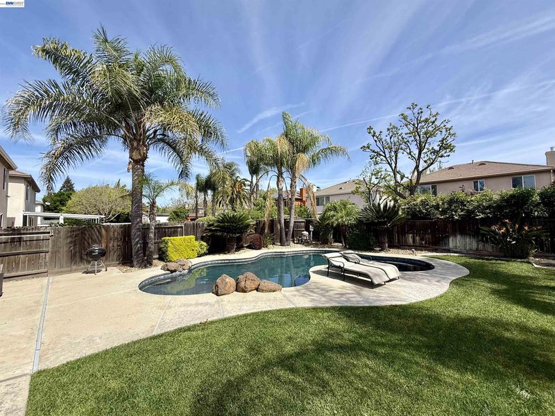 Welcome home to 4484 Lindsey Lane, located in the highly sought-after Glenbriar Estates in Tracy. This spacious two-story residence offers approximately 2,447 square feet of thoughtfully designed living space, featuring four bedrooms with the potential for a fifth. The versatile floor plan includes a bedroom and a full bathroom conveniently located downstairs—perfect for guests or multi-generational living. In total, the home offers three full bathrooms, ensuring comfort and convenience for the entire household. Step inside to a grand entryway highlighted by soaring high ceilings & an elegant spiral staircase, creating a striking first impression. The entry level showcases newer flooring, adding a fresh and modern touch throughout the main living areas, while plantation shutters throughout the home add timeless style, privacy, & energy efficiency. The beautifully updated kitchen is designed for both functionality & style, making it an ideal space for cooking, entertaining, & gathering with family and friends. Outdoors, enjoy your own private retreat with an amazing landscaped backyard featuring a sparkling swimming pool—perfect for relaxing or hosting on warm California days. This home truly combines comfort, style, and location—don’t miss the opportunity to make it yours.