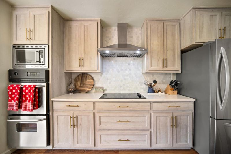 - Cooktop - Electric, Countertop - Quartz, Dishwasher, Exhaust Fan, Microwave, Oven - Built-In, Refrigerator