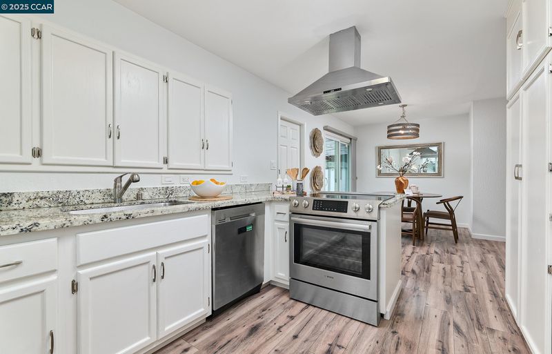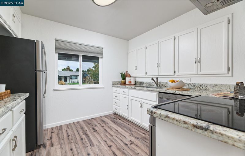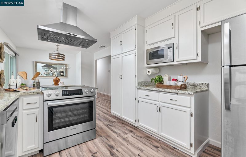 - Dishwasher, Electric Range, Microwave, Refrigerator, Gas Water Heater, Stone Counters, Eat-in Kitchen, Electric Range/Cooktop, Updated Kitchen
