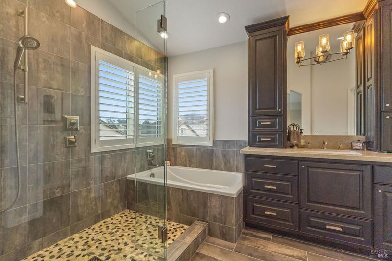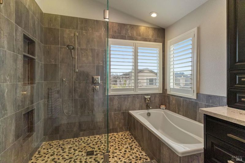 Located in the popular Green Valley close to Green Valley creek and Rockville Park, this beautifully maintained corner lot offers a spacious floorplan and elegant upgrades throughout! Featuring four bedrooms PLUS a downstairs flex room/office and three fully remodeled bathrooms (one full bedroom and bathroom on the main level), this house has plenty of room to spread out. Vaulted ceilings in the living room, family room, and primary suite enhance the home's open, airy feel with lots of natural light throughout. The kitchen is thoughtfully designed with ample cabinetry, granite countertops, stainless steel appliances (including newer double oven)! Some of the recent upgrades include wood-laminate flooring, plantation shutters, spa-inspired remodeled bathrooms featuring an expanded primary shower, new interior paint, fireplace tile, fixtures, door hardware, laundry room sink and much more! The backyard features mature lemon, grapefruit, and nectarine trees. Enjoy prime location close to Nelda Mundy Elementary School, Vintage Green Valley Park, the greenbelt, trails with access to Green Valley Creek and Rockville Hills Regional Park. Conveniently close to shopping, dining, Costco, and only a short drive to downtown Napathis home offers the best of Green Valley living!