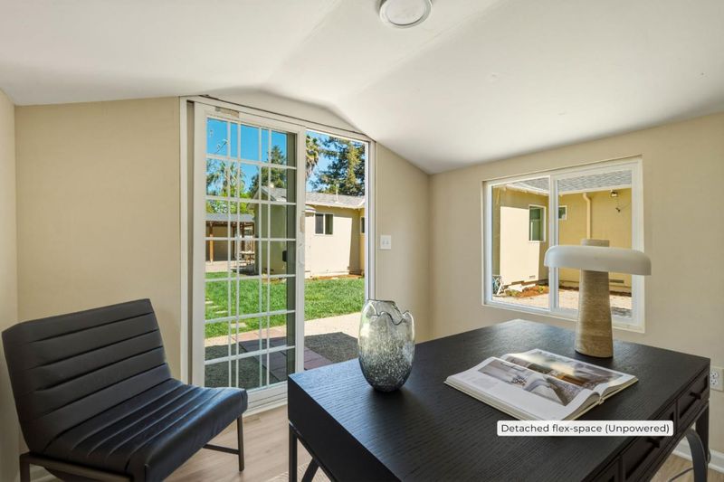 This beautifully updated East Palo Alto home tucked away down a private lane offers a bright, open living experience with a seamless connection to the outdoors. The interior features a modern kitchen with solid surface countertops and stainless steel appliances, a functional dining nook with an integrated laundry closet, and serene bedrooms bathed in natural light, with the primary bedroom featuring an ensuite bath. Refreshed bathrooms with contemporary fixtures add a touch of luxury, while the expansive backyard serves as a private retreat, anchored by a large covered timber patio perfect for al fresco lounging. A standout separate backyard space (no electric) could double as the ultimate quiet zone/flex space. This central location provides unparalleled convenience with direct routes to Palo Alto and Stanford, all while being moments from scenic trails and major commute arteries. A close in location putting you just moments from everything Silicon Valley in either direction, truly at the heart of it all.