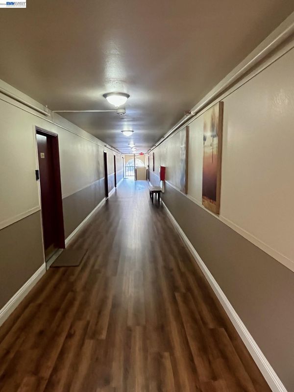 Top floor condo only a short walk to Bayfair Center, conveniently located on a transit line. This move in ready 2 bed/1 bath boasts 811 square feet! Inside you are welcomed with laminate flooring, remodeled bath and spacious closets. The kitchen adds all inclusive newer stainless appliances including space for a washer/dryer combo, there is gated reserved 2 car tanden parking spaces. Many common spaces including a rooftop terrace, game room, gym, outdoor lawn, and BBQ area. Your private patio has a filtered view of the future park, perfect for your pet, entertaining guests or some sunshine. Elementary and middle schools all within a 15 minute walking distance.