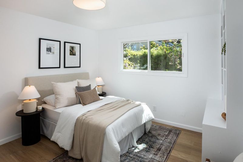 Welcome home to this darling, well-loved residence in the desirable Barron Park neighborhood of Palo Alto, offered for the first time in 40 years. This move-in-ready single-family home has been tastefully remodeled within the past two years with luxury vinyl plank flooring, contemporary light fixtures, and fresh interior paint throughout. The kitchen features quartz countertops and stainless steel appliances, including a Fisher & Paykel refrigerator, Broan vent hood, GE dishwasher, and built-in oven. The living room offers recessed lighting, a wood-burning fireplace, and built-in shelving. The home includes three bedrooms, including a primary suite with ensuite bath, plus a hall bathroom with soaking tub and custom herringbone-style tile. Two sliding glass doors open to a private side patio and backyard with gazebo and lush landscaping featuring mature cherry trees, a dwarf apple tree, and thornless blackberry and blueberry bushes. Energy efficient dual-pane windows, added wall and ceiling insulation, and a brand-new water heater provide year round comfort. Located in a peaceful community served by top-rated Palo Alto schools, with excellent proximity to Stanford University, high-tech hubs, and Bol Park. You won't want to miss this home in the heart of Silicon Valley.