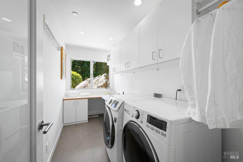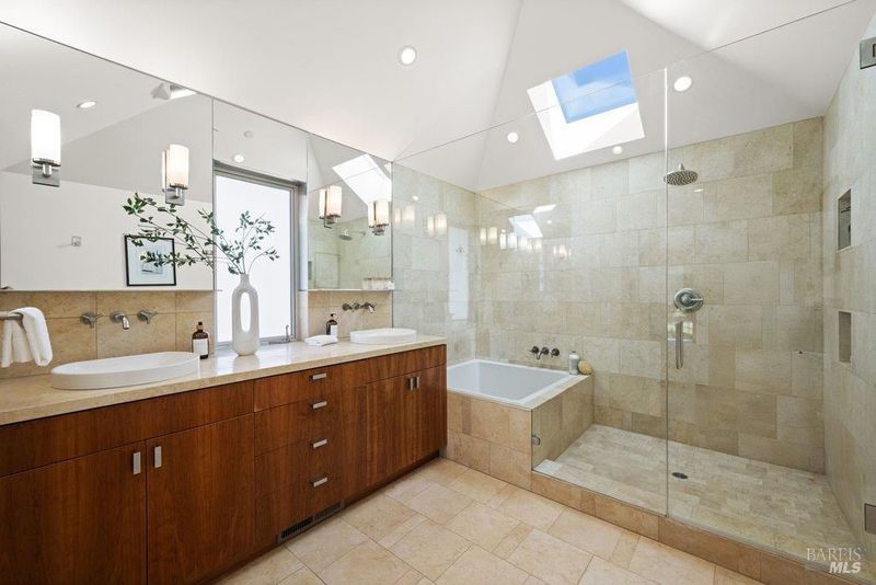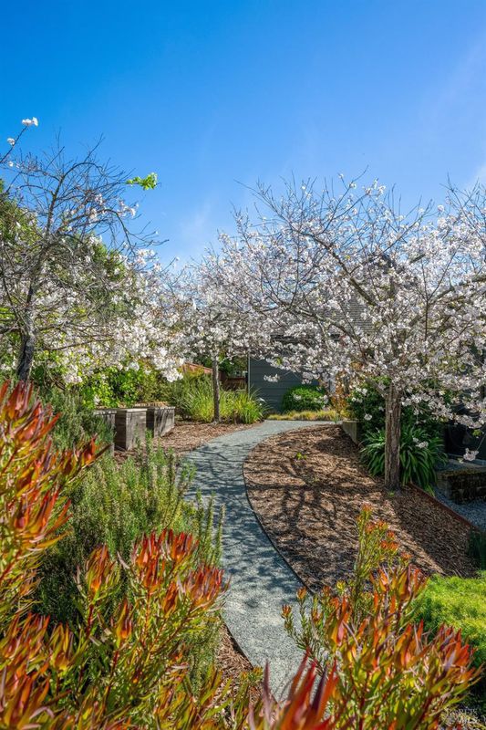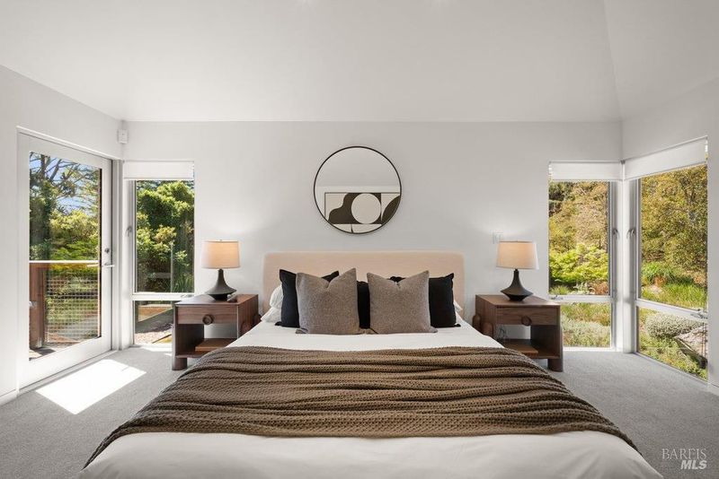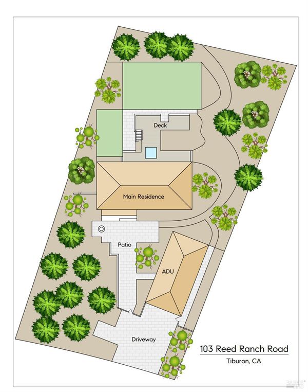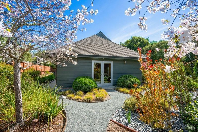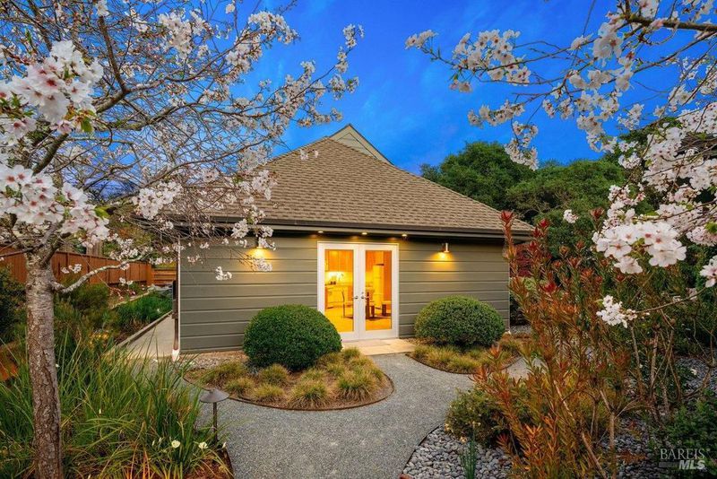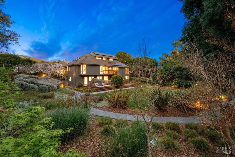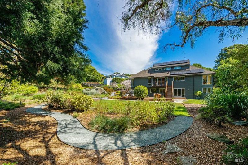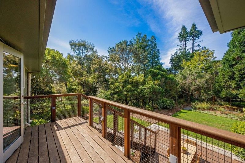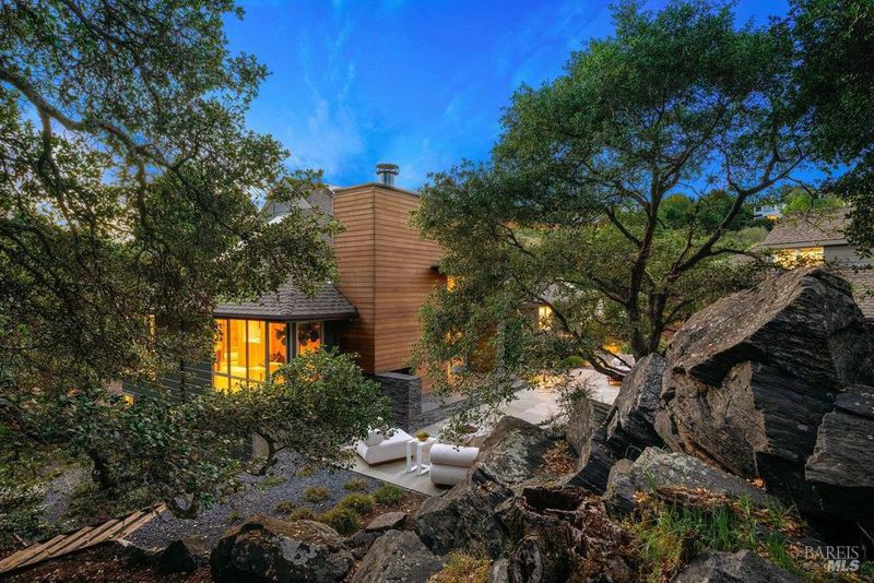 The approach to the gated estate at 103 Reed Ranch Road is truly impressive, offering a dramatic, sylvan environment enhanced by exceptional landscaping. Privacy is ensured by natural rock formations that surround the property, providing a tranquil and secluded atmosphere. The flat, expansive backyard is perfect for hosting Thanksgiving football games or unforgettable gatherings with friends and family. The main residence boasts a custom chef's kitchen, ideal for culinary enthusiasts. It offers both casual and formal dining spaces, along with several comfortable lounging and living rooms. The home includes four bedrooms and three full bathrooms, providing ample space for family and guests. The guest house, or accessory dwelling unit (ADU), is a completely separate two-story structure. It features a full kitchen, spacious living and dining areas, and an upstairs bedroom with a full bathroom. This versatile space is perfectly suited for visitors, remote work meetings with clients, or accommodating an au pair. The estate has been enhanced with numerous modern upgrades, including owned solar panels, two Tesla Powerwalls, an electric car charger, and air conditioning. Located in the highly sought-after mid-peninsula Reedlands area, the property offers convenient access to the freeway, bike path, downtown Tiburon, and the ferry.