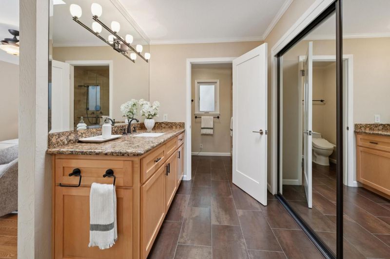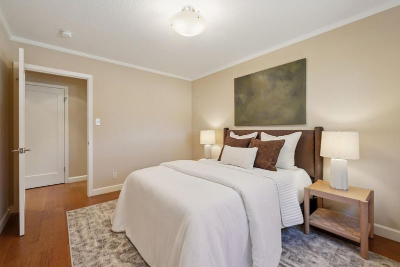 Prime location in North Los Altos! The front yard slate patio and the matching vegetation are a mastery of harmony. The reed glass entry doors signal the sophistication of the home. This home has a great floorplan and beautiful hardwood flooring throughout. The dining room on the right is perfectly situated for formal dining. The living room, with a wood burning fireplace, is large and flows to the back courtyard for in-and-out entertaining. An amazing skylight fills the kitchen with brightness. It has a spacious eat-in area that opens to the family room. High ceilings, floor to ceiling windows, and a charming pot belly stove make this family room really special. There is a lovely guest bath off the family room To the left of the entry is the bedroom wing that comprises 3 good sized bedrooms with fitted closets & served by a hall bath. The primary suite has a large dressing area with closets and a granite vanity. The oversized shower has floor to ceiling stone tiled walls and a seat. The backyard has a beautiful flagstone courtyard surrounded by mature roses. Step up to a lovely lawn and a grove of mature citrus trees. The solar panels and the heat pump system make this home energy efficient. Ideally located in this prestigious neighborhood, this home is a delight to behold.