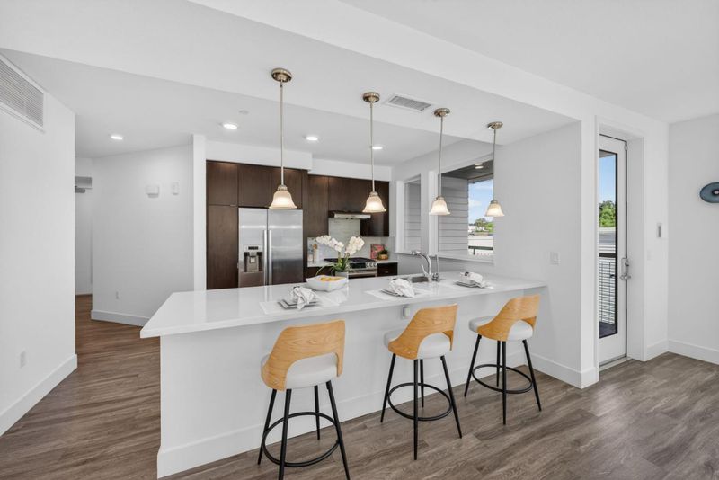 Unbeatable Location! Built in 2021, this luxurious condo is perfectly situated in the heart of Fremont and offers a sleek, modern single-level design. This corner unit features soaring ceilings and expansive floor-to-ceiling windows that fill the home with natural light. Fresh interior paint enhances the bright, open-concept layout, creating an inviting space ideal for both everyday living and entertaining.The stylish kitchen boasts a large center island, stainless-steel appliances, and abundant storage. The spacious living room is highlighted by extra-tall windows. The primary suite enjoys the same abundance of light, along with a walk-in closet and an oversized spa-inspired bathroom. Two additional bedrooms are thoughtfully located away from the primary suite for added privacy, along with a second full bathroom and convenient in-unit laundry. Additional highlights include two secured underground parking spaces, access to a fitness center, and a beautifully designed courtyard featuring BBQ and fire pit areas. Gas, hot water and garbage are included in the HOA. Enjoy central location with restaurants and dining just downstairs, and close proximity to Fremont Hub, BART, and Central Park. Easy access to I-880.