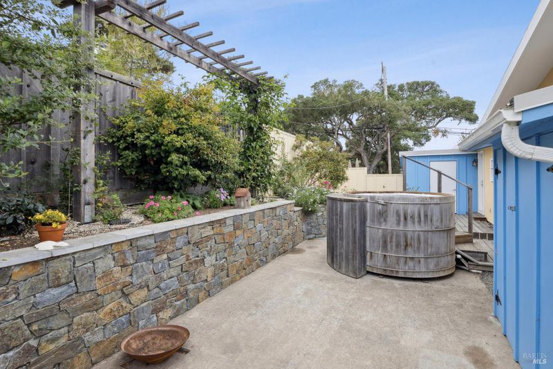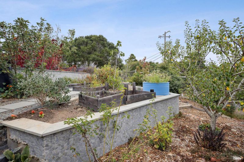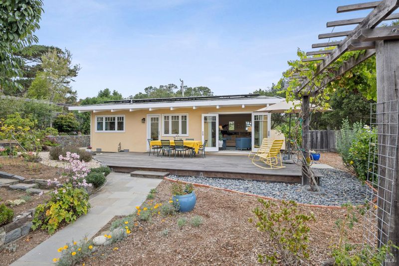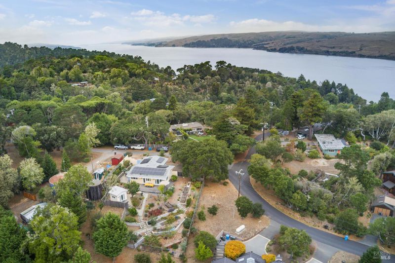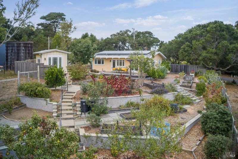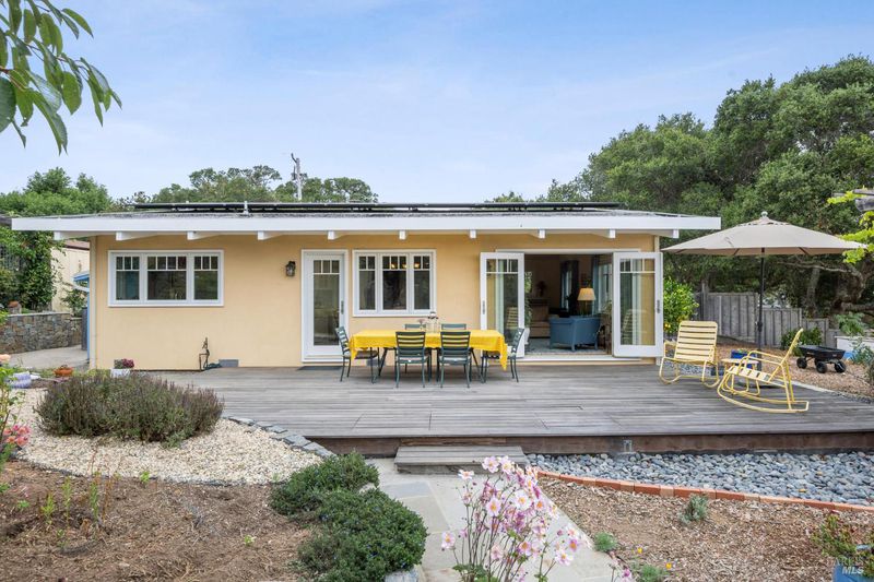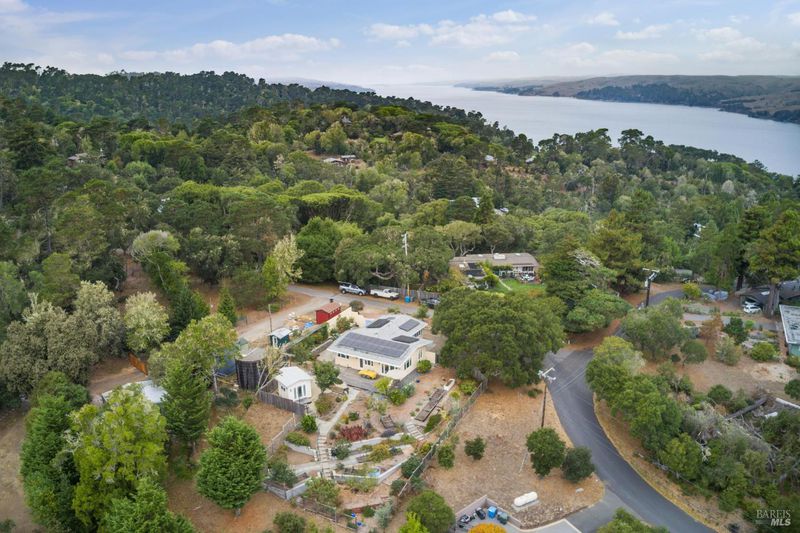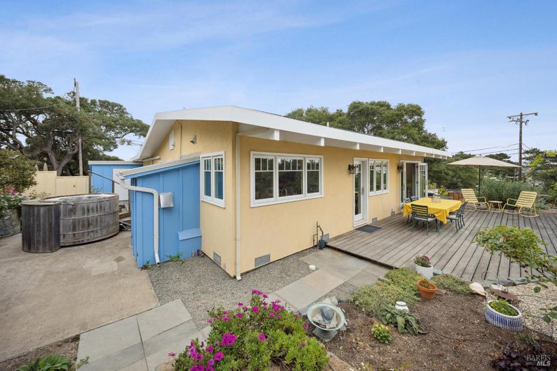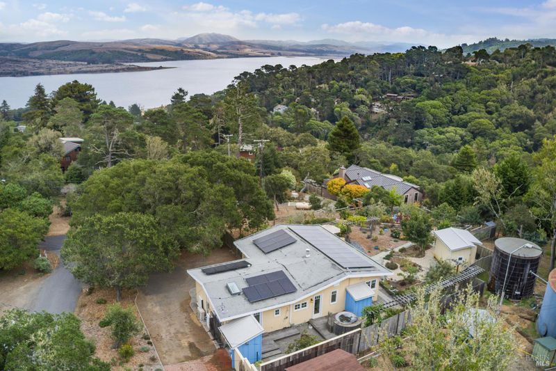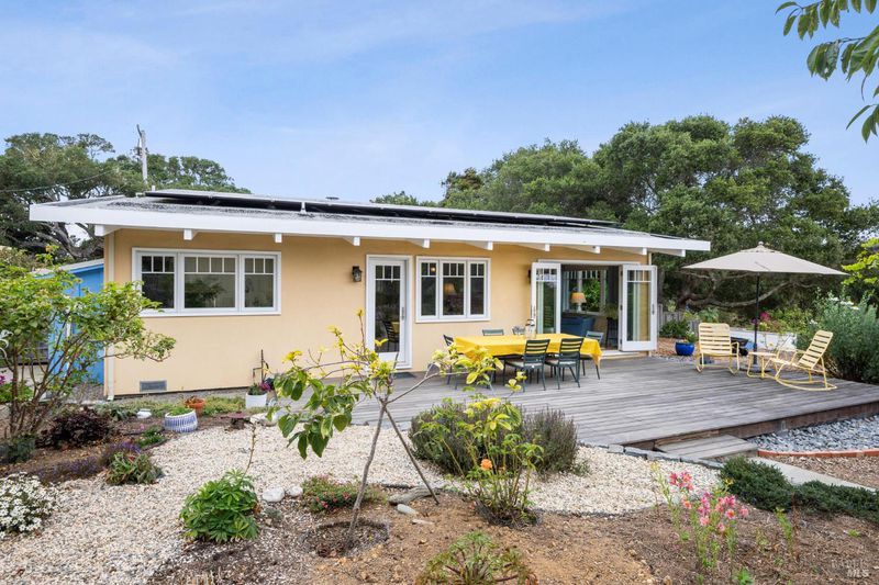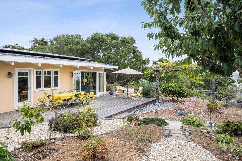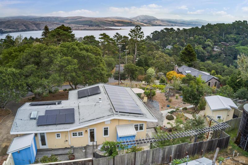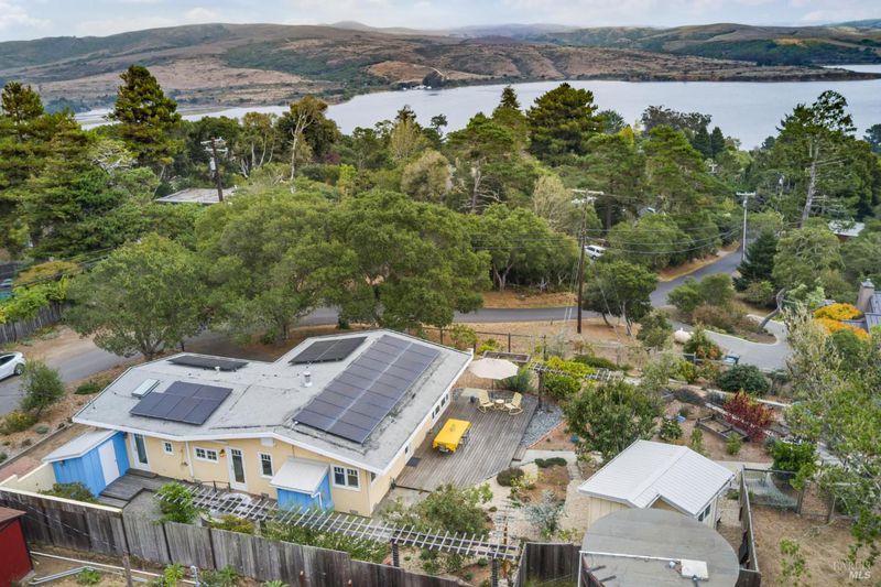With a stunning view of Tomales Bay & the Second Valley ridge, 215 Via de la Vista is an environmentally conscious gem nestled in the sought after Seahaven neighborhood. This 2BR/2BA single-level home has been thoughtfully updated for inspired living in West Marin. The home is fully electric with owned solar panels & 3 Tesla batteries that run the entire home including a back-up battery and outlet for EV charger. Enjoy hardwood floors & vaulted ceilings inside the home as well as a living/dining room combo that showcases the breathtaking water view. French doors lead to a gorgeous Cumuru deck where you can enjoy the South-facing exposure, lush gardens & incredible views. The kitchen has SS appliances, quartz counters & tile by Blue Slide Tiles. The primary bedroom has an ensuite bath w/ clawfoot tub & and walk-in closet with Elfa storage. Just outside the primary is a cedar wood hot tub & outdoor shower. A full bath & bedroom w/ Murphy bed complete this lovely home. The property is fully fenced w/ terraced gardens with flagstone pathways showcasing a multitude of flowers as well as native and edible plants and trees. A detached studio is the perfect flex space w/ sink and 2nd outdoor shower. Thoughtfully upgraded & impeccably maintained - a perfect retreat!