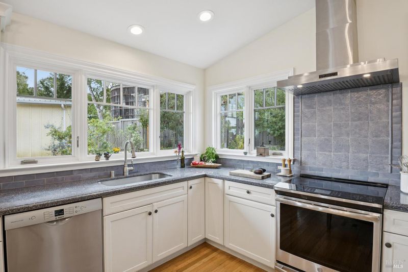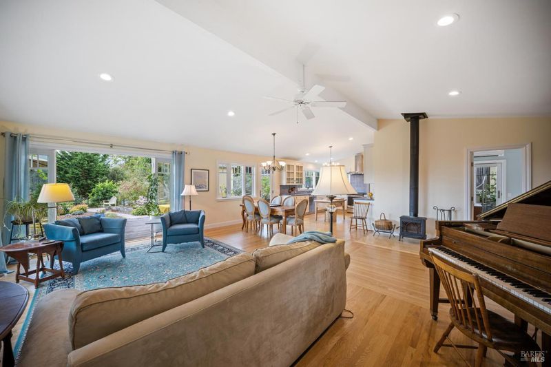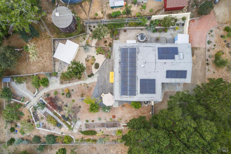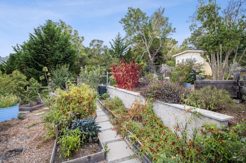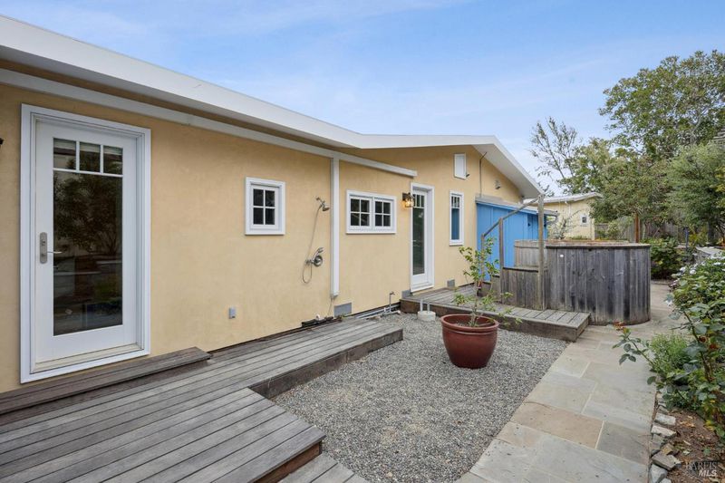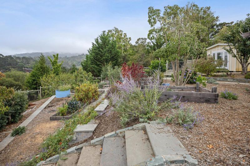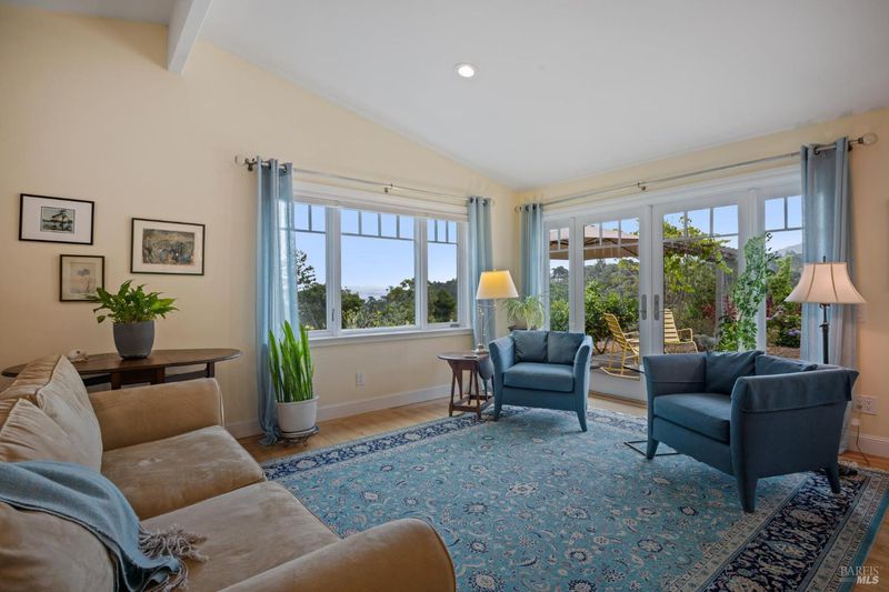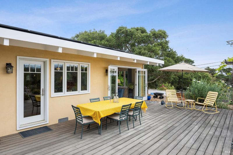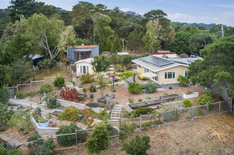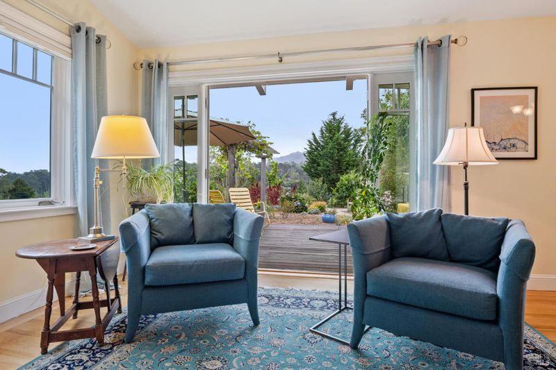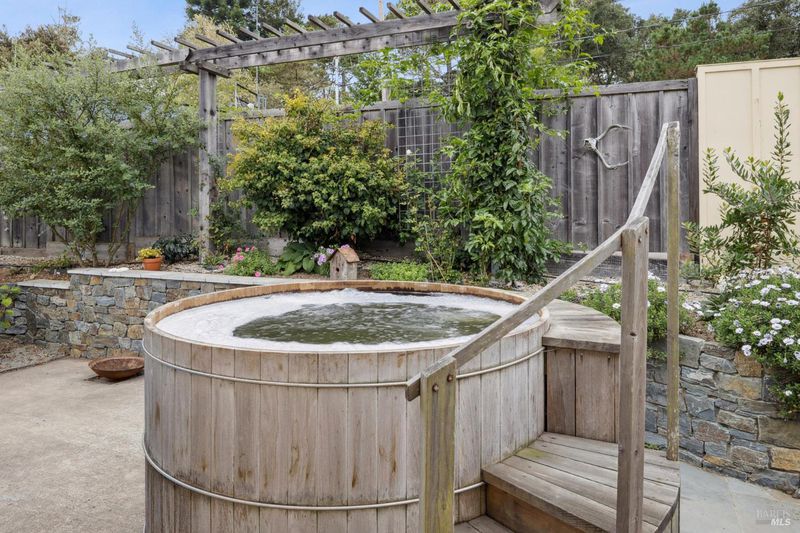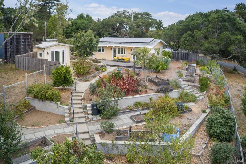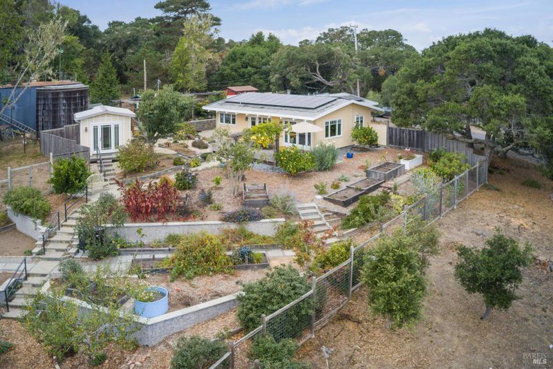 With a stunning view of Tomales Bay & the Second Valley ridge, 215 Via de la Vista is an environmentally conscious gem nestled in the sought after Seahaven neighborhood. This 2BR/2BA single-level home has been thoughtfully updated for inspired living in West Marin. The home is fully electric with owned solar panels & 3 Tesla batteries that run the entire home including a back-up battery and outlet for EV charger. Enjoy hardwood floors & vaulted ceilings inside the home as well as a living/dining room combo that showcases the breathtaking water view. French doors lead to a gorgeous Cumuru deck where you can enjoy the South-facing exposure, lush gardens & incredible views. The kitchen has SS appliances, quartz counters & tile by Blue Slide Tiles. The primary bedroom has an ensuite bath w/ clawfoot tub & and walk-in closet with Elfa storage. Just outside the primary is a cedar wood hot tub & outdoor shower. A full bath & bedroom w/ Murphy bed complete this lovely home. The property is fully fenced w/ terraced gardens with flagstone pathways showcasing a multitude of flowers as well as native and edible plants and trees. A detached studio is the perfect flex space w/ sink and 2nd outdoor shower. Thoughtfully upgraded & impeccably maintained - a perfect retreat!