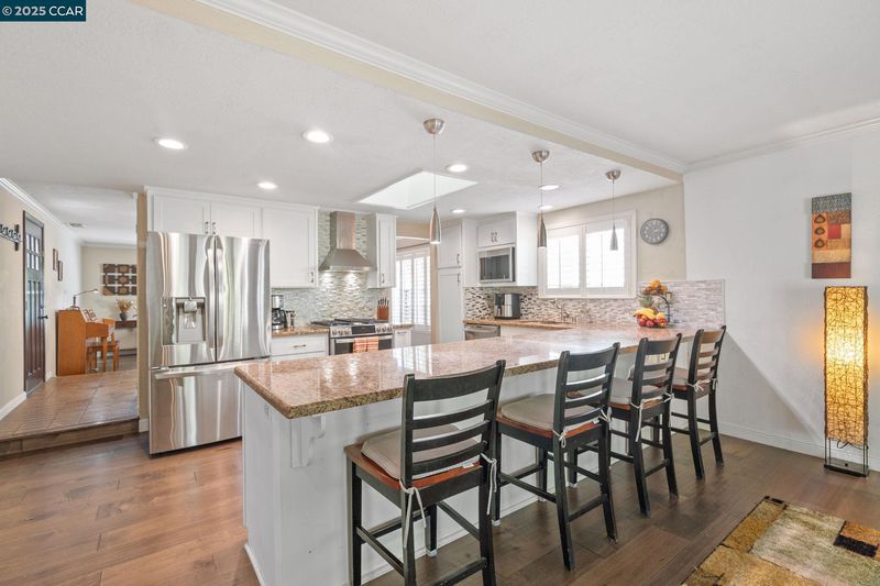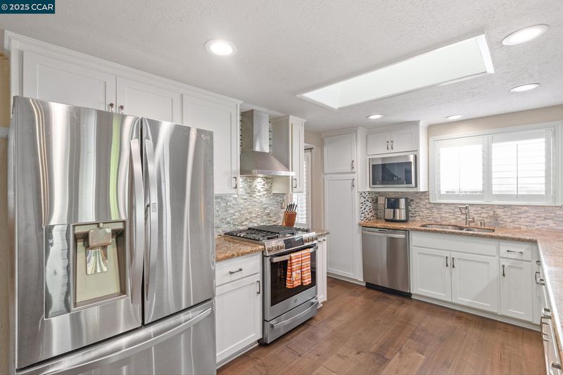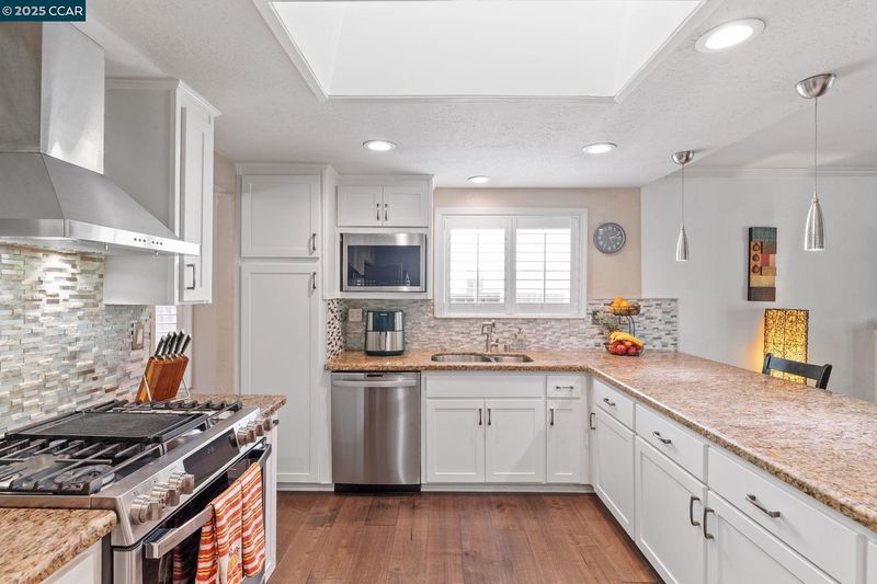 - Dishwasher, Gas Range, Oven, Refrigerator, Gas Water Heater, Breakfast Bar, Stone Counters, Disposal, Gas Range/Cooktop, Oven Built-in, Updated Kitchen