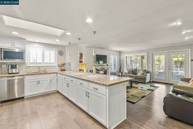 Welcome to your future home at 4493 Sweet Shrub Court, nestled in the heart of The Crossings, one of Concord's most desirable communities. This charming single-story residence offers a harmonious blend of comfort and style with its 4 bedrooms and 2 bathrooms spread across 1,805 square feet of thoughtfully designed living space. Step inside to be greeted by the open and inviting layout of the living and dining areas, adorned with Pergo laminate flooring, creating a seamless flow. The kitchen is a chef's delight, boasting newer wood cabinetry, granite countertops, stainless steel appliances, a gas cooktop and griddle, and a chic chimney hood. The expansive breakfast bar overlooks the family room, ensuring a spacious and airy ambiance, perfect for gatherings and relaxation.Cozy gas fireplace providing warmth and charm to the entire area. French doors lead out to a spacious covered patio equipped with built-in speakers, ideal for entertaining or simply enjoying your private outdoor space. Enjoy the unparalleled community amenities just minutes away, including multiple pools, tennis courts, and a clubhouse. Central AC, dual pane windows, plantation shutters, two car garage, this home is your gateway to a balanced and enjoyable lifestyle. Welcome to resort-like living at The Crossings!