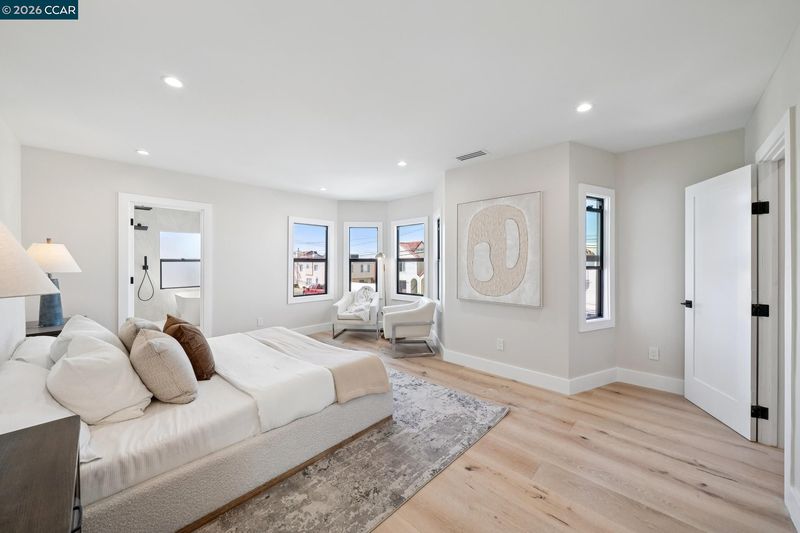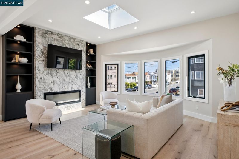 Meticulously reimagined from the studs up, this exceptional Sunset District residence blends modern luxury with refined craftsmanship throughout. Rebuilt with all new electrical, plumbing, and HVAC including air conditioning, the home features a flawless Level 5 smooth wall finish and wide plank white oak engineered hardwood flooring. Soaring ceilings and newly added skylights flood the open concept living, dining, and kitchen areas with natural light, creating an inviting and elevated atmosphere. The designer culinary hub showcases walnut European style cabinetry, quartz countertops with a waterfall island, and premium appliances including a Thermador range and dishwasher, Bosch refrigerator, two zone wine refrigerator, and a microwave drawer. Upstairs, the skylit primary suite and additional en suite offer spa inspired baths with curbless showers, heated floors, heated towel racks, Toto bidets, and Hansgrohe fixtures. A striking glass enclosed staircase with LED lighting leads to the lower level featuring two additional en suites, a wet bar, and a spacious second living area. Bifold doors open to a low maintenance backyard with artificial turf and a pergola, creating seamless indoor outdoor living. A rare offering in one of San Francisco’s most coveted coastal enclaves.