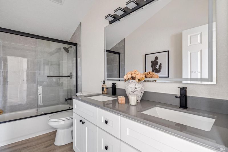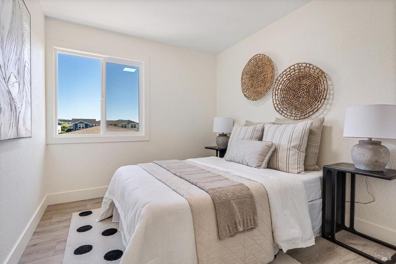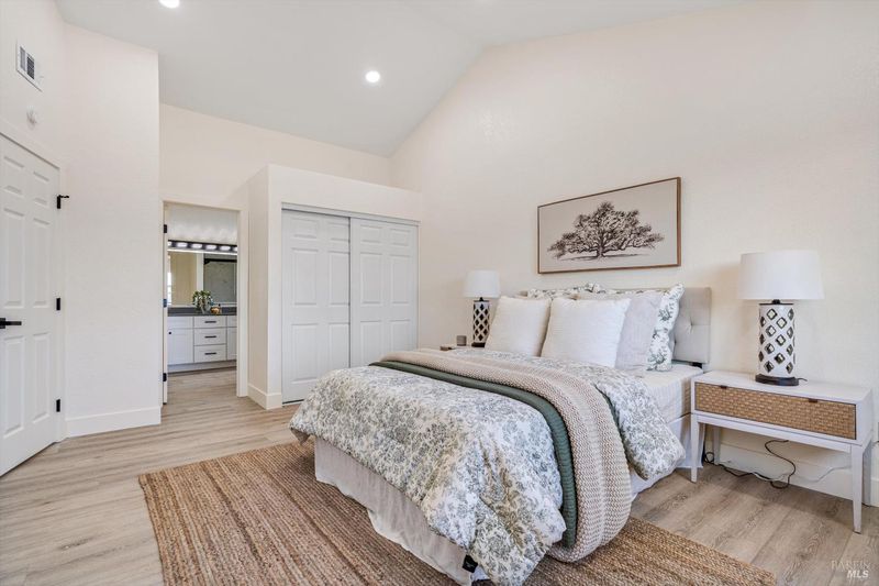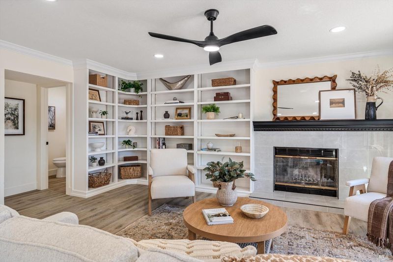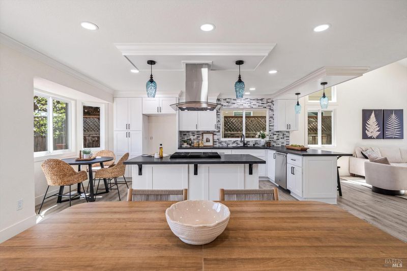 Tucked away at the end of a quiet cul-de-sac, this beautifully remodeled two-story home is located in the heart of Wine Country within the highly desirable Coffey Park community of Santa Rosa. Offering 3 bedrooms, 2.5 bathrooms, and 1,835 sq ft of living space, this move-in-ready residence blends modern upgrades with comfortable living. The thoughtfully designed open floor plan showcases a stunning remodeled kitchen that flows seamlessly into both the family and living rooms perfect for everyday living and entertaining. The kitchen features new white shaker cabinetry, sleek black quartz countertops, a stylish tiled backsplash, and brand-new stainless steel appliances including a range, dishwasher, and island hood. The spacious island provides seating from two sides, creating an inviting gathering space. Additional highlights include a tiled fireplace, beautifully remodeled bathrooms with LED mirrors and custom tiled tub and shower surrounds, waterproof laminate flooring, new baseboards and crown molding, LED recessed lighting, and smooth ceilings throughout. The home also offers dual-pane windows, new patio sliders, a new water heater, and a new gas furnace for added comfort and efficiency. Freshly painted inside and out, the property features low-maintenance landscaping in both the front and rear yards. The home is professionally staged to showcase its full potential. Conveniently located near local dining, parks, shopping, wineries, and scenic trails, with easy access to U.S. Route 101 for smooth commuting and quick weekend escapes to the best destinations throughout Sonoma County.