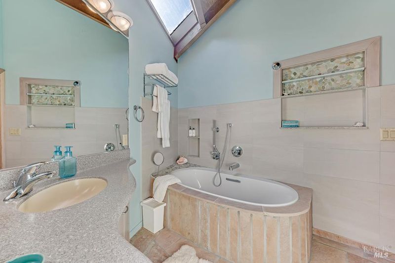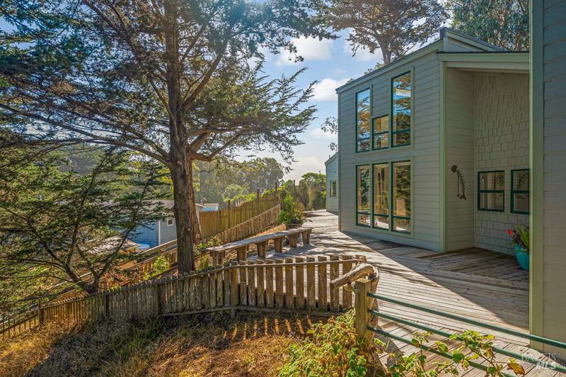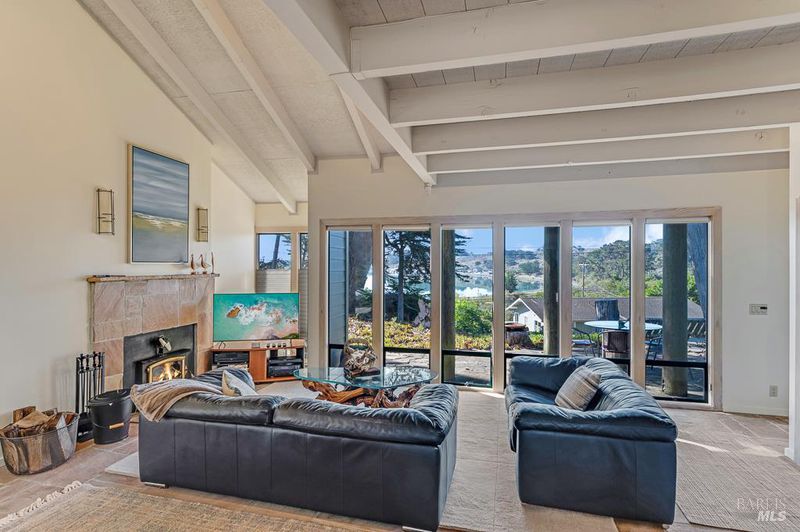 Thoughtfully maintained, this two-bedroom, two-bath home enjoys a serene bay-view setting overlooking Bodega Bay, with sweeping vistas of the harbor toward Doran Beach and Tomales Point. The spacious lot is surrounded by mature trees and coastal vegetation, creating a peaceful atmosphere that embodies the essence of coastal living. The home features a new roof on both the house and detached garage (2024), multiple newly installed skylights and windows, newer carpeting, and a Lochinvar combination on-demand heating system providing both radiant floor heating and domestic hot water. The exterior showcases durable Hardie siding designed for coastal resilience. Inside, vaulted ceilings and abundant natural light highlight the open floor plan. The kitchen includes a Viking six-burner cooktop, Sub-Zero refrigerator with matching wood paneling, and sleek countertops that enhance the home's coastal charm. The primary suite and guest bedroom offer comfort and space, while the loft opens to a bay-view deckideal for taking in sunrise and sunset views. Just moments from beaches, restaurants, and hiking trails, this home captures the perfect balance of tranquility, quality craftsmanship, and timeless coastal appeal.