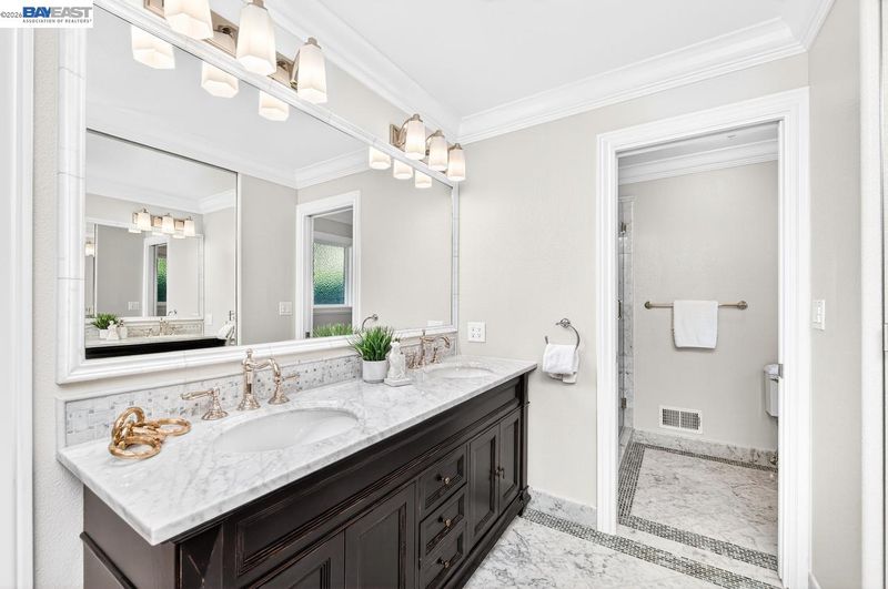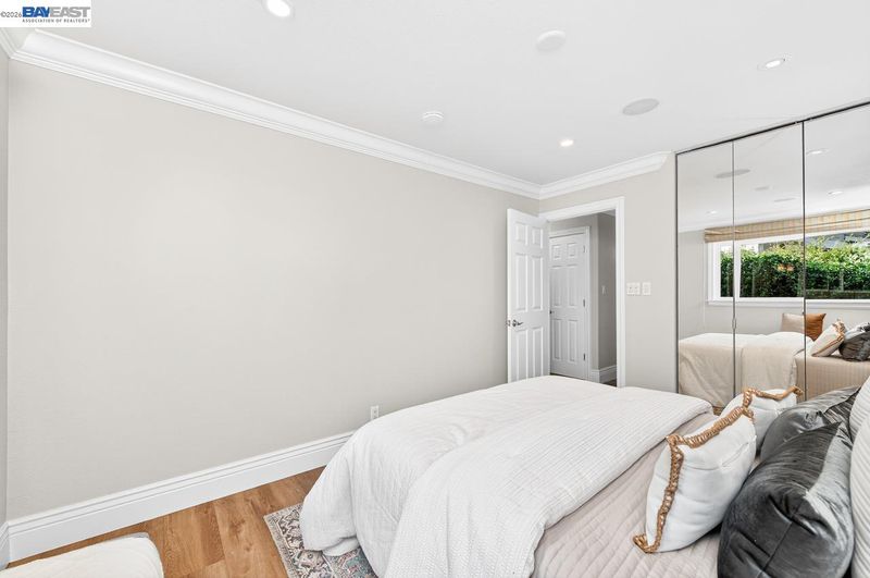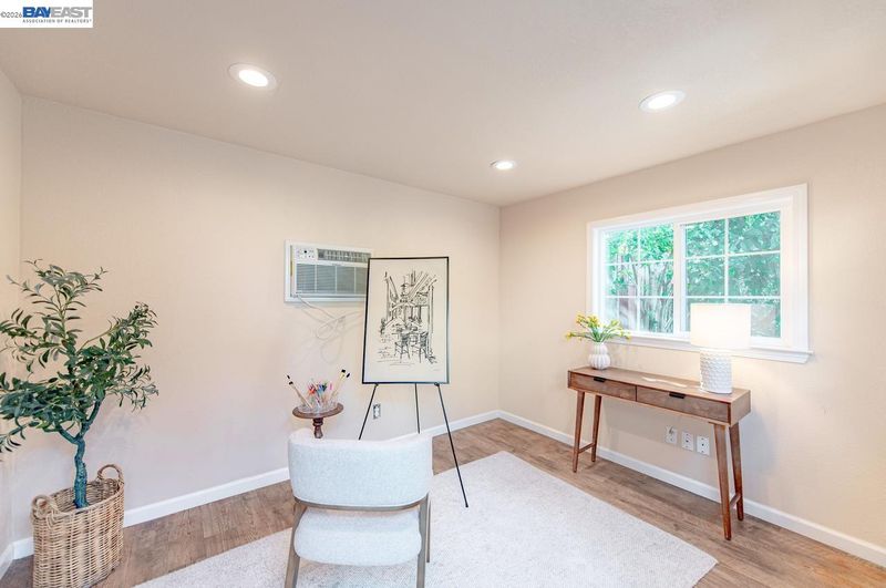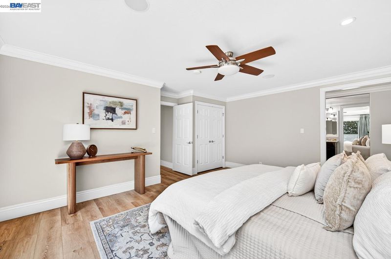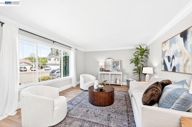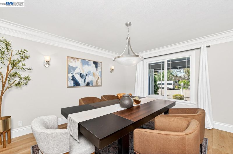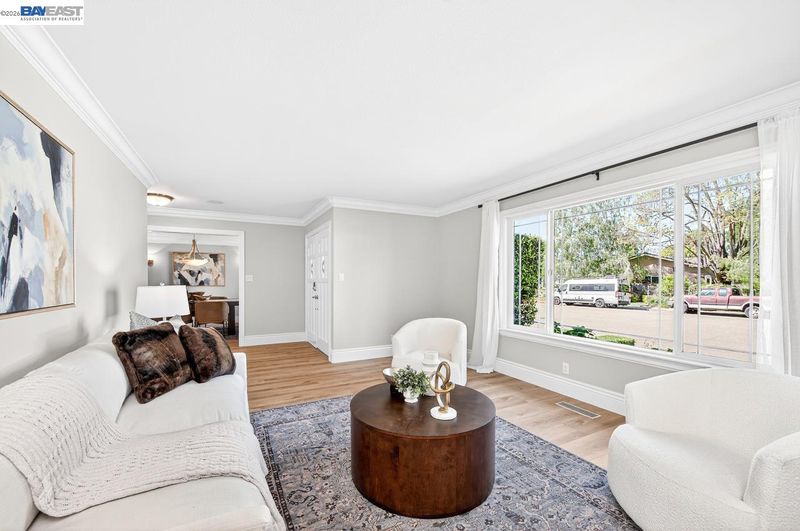 Beautifully updated single-story home in desirable Pleasanton offering 4 bedrooms, 2 baths, and 2,193 sq ft on an 8,603 sq ft lot with no right side neighbors! Featuring neutral LVP flooring and crown molding throughout, this home blends comfort and style. Enjoy a formal dining room and a well-appointed kitchen with custom wood cabinetry, stone countertops, stainless steel appliances, and a charming bay window. Full-size laundry room includes built-in cabinets for added convenience. Spacious bedrooms feature custom closet organizers and mirrored bifold doors. Updated hall bath offers a stone shower, double vanity, and backyard access. The primary suite includes backyard access, dual closets, and a beautifully finished bath with stone surfaces. Private backyard boasts mature trees, citrus trees, pergola, paver patio, and large detached finished shed complete with electrical and wall AC , perfect for outdoor storage or bonus office space.