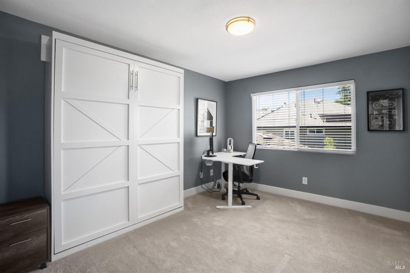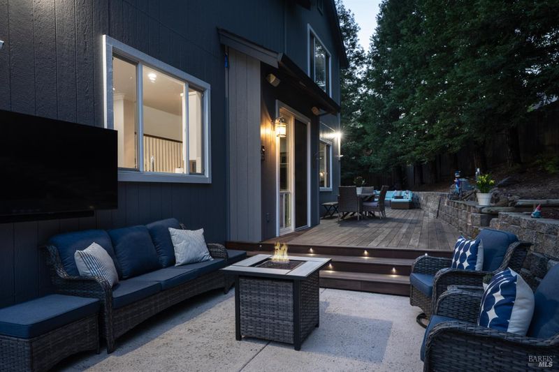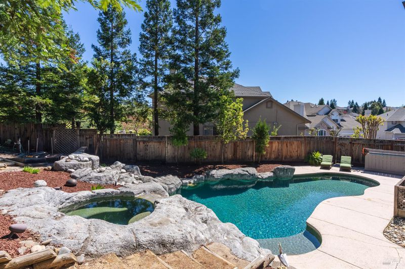 Welcome to Redwood Manor- a stunning Skyhawk retreat, framed by majestic redwoods and ideally situated at the end of a quiet cul-de-sac. The recently remodeled gourmet kitchen offers quartz counters, an expansive island with bar seating, newer cabinets, dual ovens, built-in microwave, gas cooktop, instant hot water, and a walk-in pantry. Designed for entertaining, the private backyard features a custom Ipe deck with integrated LED lighting, a gorgeous pool and hot tub with waterfall feature, and an open grassy area with life-like turf. Hardwood floors downstairs, custom built-in cabinetry, and solid-core wood doors throughout set a refined tone. The house features 5 bedrooms and 3 full bathrooms, including a bedroom and stylishly remodeled full bath downstairs. The spacious primary suite has dual walk-in closets with built-in closet systems and its own whole-house fan. A loft area upstairs, plus both living and family rooms downstairs, provide ample space for everyone. The 3 car garage features overhead storage and MyQ openers. This smart home has been upgraded with: CAT-5 wiring (ideal for working from home), Sonos sound system inside and out, Kasa LED lighting, iAquaLink for remote pool control, ReoLink security, a back-up generator, a Nest thermostat and more.
