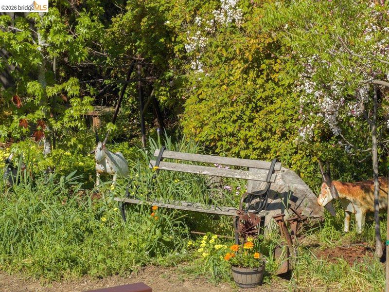 Tucked behind lush, mature landscaping, 737 Dartshire Way is the original farmhouse of the neighborhood, offering rare privacy, history & serenity. This 3BD/2BA home lives like a secluded retreat, filled with natural light & garden views. Thoughtfully updated while preserving its charm, the home features refinished hardwood floors, fresh paint, designer lighting & intuitive layout. Two fireplaces add warmth, remodeled kitchen w/ quartz countertops, farmhouse sink, SS appliances & bay window overlooking the resplendent garden. French doors open to an expansive patio creating effortless indoor-outdoor flow into a dreamy garden sanctuary. Jasmine, roses, daisies, nasturtiums, and California poppies as well as mature fruit trees including lemon & lime, apricots & fuji. Playful catio, dog run & whimsical fairy cottage add to the charm. Equipped w/ large family room, finished basement, attic & storage sheds. System upgrades: solar + Tesla Powerwalls, roof (2024), updated electrical & plumbing, newer furnace & water heater, EV plug. Close to Apple, NVIDIA, & major SV employers, yet feels worlds away. Uniquely zoned for Stocklmeir ES, Cupertino MS, & Fremont HS, a coveted advantage. A gem you will encounter only once but can love for a lifetime.