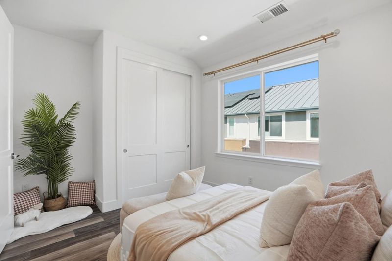 Discover this stunning 4-year-new townhome-style condo in the sought-after Metro West community in Fremonts Innovation District. Thoughtfully designed for modern living, this home features a bright, open floor plan with high ceilings, abundant natural light, and a low HOA in the $300s. Stylish interior includes luxury vinyl plank flooring, quality cabinetry, and premium finishes throughout. The upgraded kitchen offers quartz countertops, premium stainless steel appliances, ample cabinetry, and a spacious island ideal for cooking and entertaining. The primary suite features high ceilings, large windows, a modern en-suite bath with dual vanities, and a walk-in closet. The second bedroom includes its own full bath, perfect for guests or a home office. 2-car tandem garage with flex space provides room for parking plus an office, gym, or extra storage. Enjoy access to a BRAND NEW community clubhouse and fitness center. Smart and energy-efficient with solar, smart thermostat, and modern connectivity. Prime location near Tesla and major tech shuttle stops, with easy access to BART, Hwy 880/680, shopping, dining, parks, and schools. Dont miss this contemporary, low-maintenance home in a vibrant, growing neighborhood!