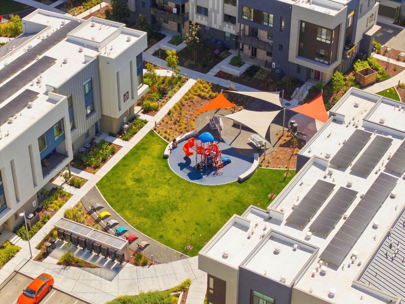 Modern and sleek newer townhome in Fremont's Innovation district!! A beautiful clubhouse and gym amenities included in low HOA $303; Enjoy HOA owned solar related PG&E credit. You don't want to miss this!