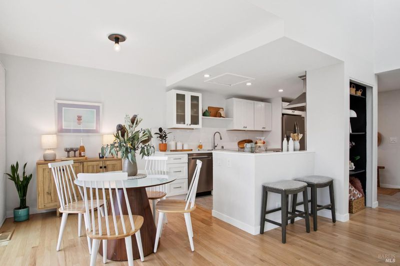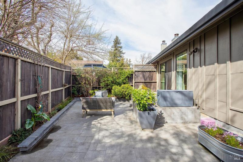 Located in the highly desirable Miller Creek community of Marinwood, this sunlit and beautifully updated 2-bedroom, 1.5-bath townhouse offers approximately 1,352 square feet of light-filled living with soaring ceilings, modern upgrades, and a private garden patio escape that defines effortless indoor-outdoor living. The dramatic main living area features vaulted ceilings, a fireplace with custom wainscoting detail, and sliding glass doors that open to an expansive private patio. Generously sized with multiple areas for dining, relaxing, and gardening, this outdoor retreat offers room for planting beds and lounge seatingperfect for enjoying Marinwood's mild climate year-round. The thoughtfully renovated kitchen showcases modern cabinetry, quartz countertops, stainless steel appliances, and clean, contemporary finishes that connect effortlessly to the dining area. A stylish barn door reveals the main-level half bath, which conveniently functions as a laundry room and includes new washer and dryer appliances for everyday ease. Upstairs, two spacious bedrooms provide comfort and flexibility. The serene primary bedroom features its own private balcony and abundant closet space, while the second bedroomhighlighted by a stylish accent walloffers versatility for guests, a home office, or creative space. The full bathroom on this level has been recently redesigned with approximately $20,000 in upgrades, featuring designer tile work, elevated finishes, and a spa-inspired shower that brings a refined, custom feel to the upper level. The current owner has invested over $72,000 in thoughtful updates throughout the home, enhancing both style and functionality with modern finishes and quality improvements. Additional improvements include electrical upgrades, attic insulation, fresh interior paint, Shade Store window coverings throughout, and numerous other enhancements that reflect true pride of ownership. Ample storage is found throughout the home, along with additional storage in the two-car covered carportan uncommon and valuable amenity. With low HOA dues of $420/month, residents enjoy access to a community pool, tennis court, and play park. Ideally located near hiking trails, within the Miller Creek School District, and close to shopping and Highway 101 access, this move-in ready residence offers comfort, style, and exceptional value.