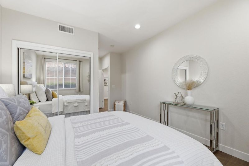 Price Reduction! Dont miss this beautifully updated ground-floor corner unit in the highly desirable Las Mariposas community! This move-in ready 2BD/2BA condo features dual-pane windows, new flooring, recessed lighting, and 9 foot ceiling, creating a bright and inviting space. The open-concept layout is perfect for modern living and entertaining. The updated kitchen boasts stainless steel appliances, a double refrigerator, gas stove, and refreshed cabinetry, seamlessly flowing into the dining and living areas. Both bathrooms are stylishly upgraded with marble tile shower finishes and updated cabinetry. Enjoy central heating & A/C, easy first-floor access, and a private detached garage. HOA allows rentals, and dues include water and garbage. Community amenities include BBQ areas, a private playground, and beautiful courtyards. Prime San Jose location with quick access to Highways 101, 280, 880, and 680, ideal for Silicon Valley commuters. Incredible value, Move-In Ready! Won't Last Long!