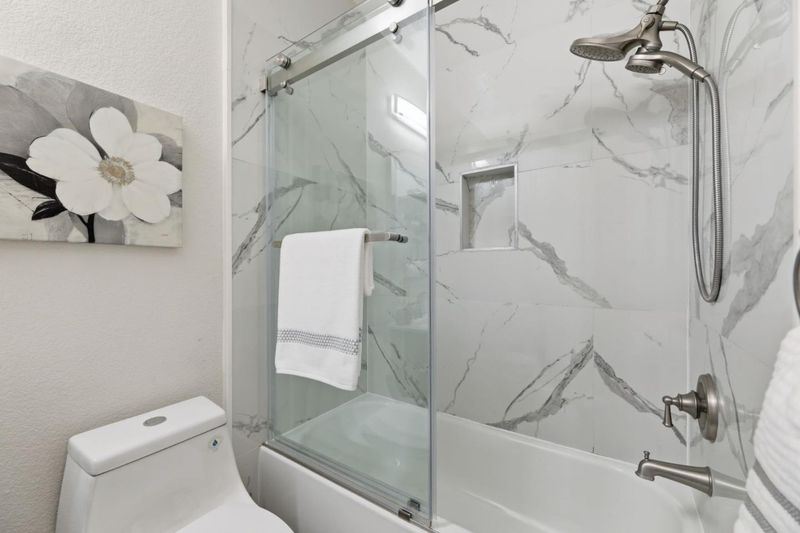 - Marble, Primary - Stall Shower(s), Shower over Tub - 1