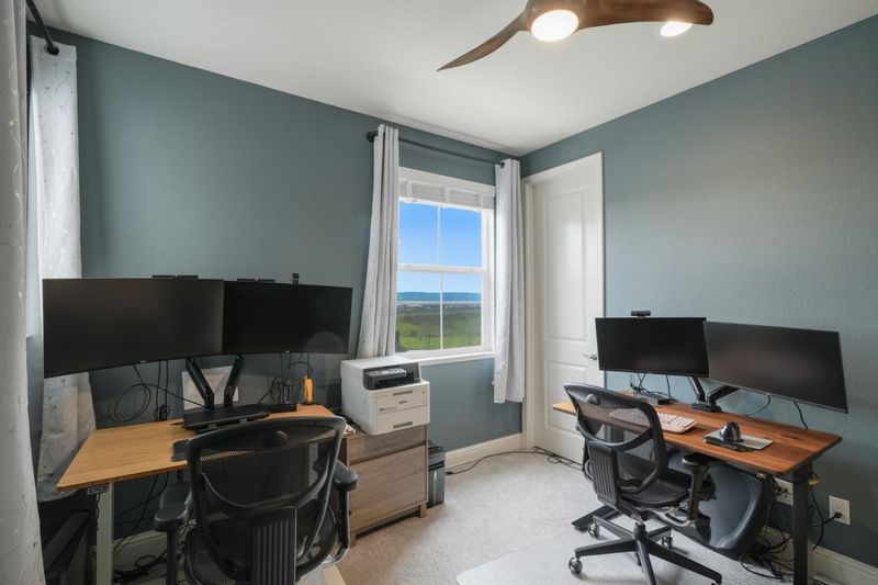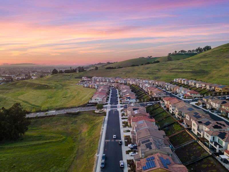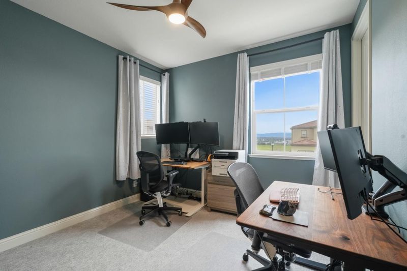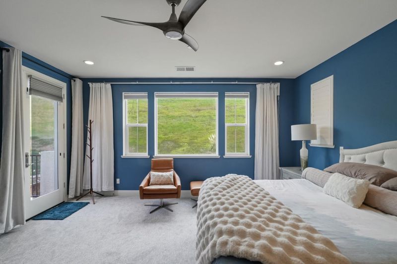Located at the end of a quiet cul-de-sac in sought-after Reserve community, this spacious 4BD/3BA home offers 2,997SF of thoughtfully designed living space with bay views, privacy, and a functional floor plan. The main level includes a bedroom and full bath, ideal for guests or multigenerational living. A welcoming entry features custom built-in cabinetry for added style and storage. The chefs kitchen is designed for everyday living and entertaining, complete with an extended island, abundant cabinetry, pantry, and generous prep space, opening seamlessly to the main living areas. Upstairs, a versatile loft can easily convert to a 5th bedroom, office, or media room. The luxurious primary suite serves as a peaceful retreat, featuring a private balcony with serene bay views. Additional bedrooms are well-sized & filled with natural light. With no rear neighbors, this premium lot backs to open hillsides, offering rare privacy and a peaceful backyard setting ideal for relaxing, entertaining, or simply enjoying the natural surroundings. From the front of the home, enjoy sweeping bay views and beautiful sunsets, providing a truly picturesque & ever-changing backdrop to everyday living. Conveniently located near BART, parks, shopping and freeways, this exceptional home truly has it all!