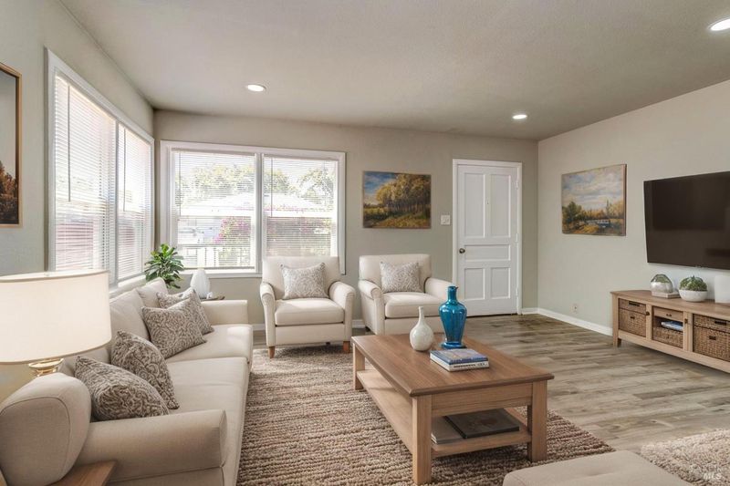 Price Improvement! Well maintained with lots of newer upgrades (4 years or newer) and located in the quiet East Vallejo subdivision of Steffan Manor. Kitchen has newer granite countertops & backsplash, newer SS refrigerator, SS gas stove & SS sink, all approximately 4 years old. Dining area with a built in hutch. Newer waterproof vinyl flooring throughout, fresh interior paint, & newer recessed lighting. Roof about 10 years old, newer dual pane windows, brand new blinds & new water heater in 2023. There is a laundry room with a utility closet. Detached single car garage with electricity, & lots of room for your cars, boat and/or RV! Big backyard with lots of newer stamped concrete and drainage. Buyers to check on ADU possibilities! Close to public transportation, schools, and 10 minutes to the S.F ferry! Less than 5 minutes to I-80 or 780 for commuters. View home and write offer!