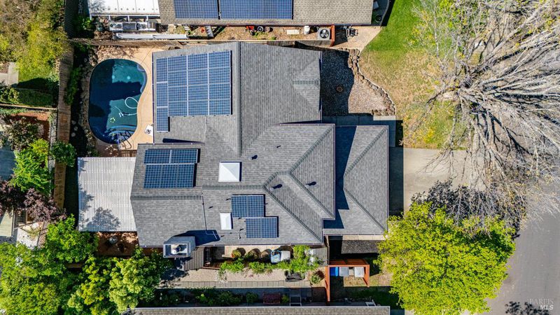 Experience the perfect blend of sustainable living and modern sophistication in this meticulously updated Meadowlands gem. From the brand-new 30-year COOL ROOF with 24 paid Tesla Solar panels to the air-purifying Nushield-R HVAC system, every detail of this home has been engineered for comfort and efficiency. Soaring vaulted ceilings and expansive Anderson windows bathe the new luxury LVP flooring in natural light. The windows have a fully transferrable warranty. The remodeled kitchen, complete with stainless steel appliances flows seamlessly into a living space anchored by a remote-controlled gas fireplace. Fresh paint inside & out. The upstairs primary retreat is a private escape featuring a skylight and a fully renovated spa-like bathroom. Need flexibility? The main level includes a full bedroom and remodeled guest bath, perfect for a home office or multi-generational living. Step outside to a professionally maintained, 12 years new saltwater pool you can control from your phone. Lounge under the massive built-in pergola on stamped concrete; the ultimate setup for year-round entertaining. With a location just one block from Meadowlands park, this is a growing family dream home. Washer/Dryer, Refrigerator, and two sheds convey.